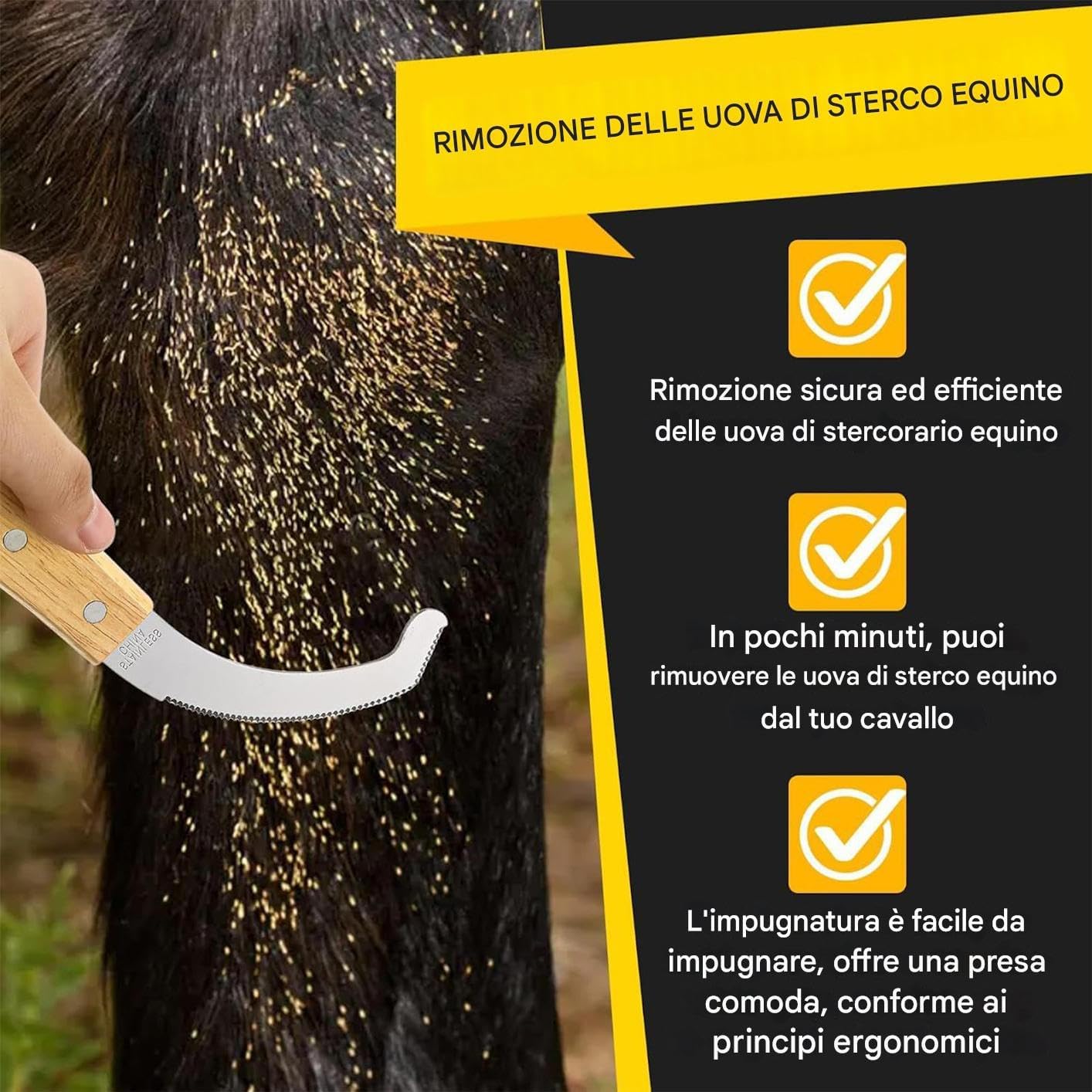 Materiale Resistente all'Usura: Il raschietto per uova di bot fly è realizzato con materiali resistenti all'abrasione e una costruzione , garantendo prestazioni di lunga durata per compiti di pulizia efficienti in giardini o fattorie, assicurando una buona resistenza all'usura derivante dall'utilizzo frequente in ambienti esterni come orti o , ideale per la manutenzione regolare delle superfici equine. Comodo da Trasportare: Il rimuovi uova di bot per presenta un design compatto e leggero che si agevolmente in una borsa per attrezzi, garantendo un trasporto e una conservazione senza sforzo durante gli spostamenti alle scuderie o gli allenamenti di toelettatura. La sua praticità migliora l'accessibilità per la cura del cavallo, rendendo le routine più fluide e riducendo il necessario per la manutenzione ordinaria. Applicazioni Multiple e Utili: Con la sua capacità di rimuovere le uova di mosca, il Rimuovitore di Uova di Mosca per aumenta il comfort durante gli allenamenti di equitazione all'aperto. Serve come dispositivo ampiamente usato che semplifica gli di ispezione equestre mentre promuove ambienti più sani, garantendo una gestione efficiente delle mosche e un supporto pratico per cavalieri e animali in sessioni di training diversificate. Strumento di Rimozione Sicuro: Progettato con una texture antiscivolo e una curvatura del manico raffinata, il Rimuovi Uova di Bot Fly per fornisce una presa che supporta azioni stabili e precise. Questo si rivela cruciale per gestire aree infestate in modo e con facilità, assicurando una rimozione completa delle uova di bot fly. La presa antiscivolo e il design ergonomico del manico migliorano il controllo e la sicurezza durante l'uso, permettendo operazioni di rimozio Soluzione per Sporco Ostinato: Dotato di un design , il rimuovitore di uova di bot fly per è eccellente nella rapida rimozione dello sporco ostinato, rendendo le sessioni di toelettatura più e lasciando il mantello pulito e senza irritazioni, con una performance costante che previene accumuli di sporco.