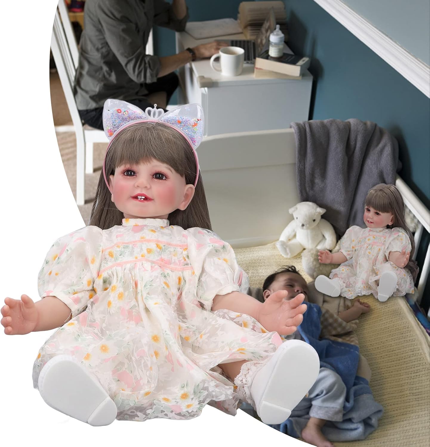 Per bambola con dettagli delicati. Materiale: capelli morbidi e viso sorridente delicato. Caratteristiche: bei occhi e dita dei piedi carini. Design adorabile e realistico. Per la bambola per bambini: design realistico con articolazioni mobili. Facile per ruotare gambe e braccia durante la vestizione. Arti flessibili per gioco realistico. per il gioco interattivo. Per la bambola per bambini: altezza 22 pollici. Size di sei mesi realistiche. Materiale durevole. Per il gioco di vestiti per bambini e le attività fantasiose di gioco di ruolo. Per bambole per bambini. L'aspetto realistico incoraggia il gioco e lo sviluppo sociale. Corpo morbido con caratteristiche dettagliate per il gioco realistico. Promuove attività fantasiose di gioco di ruolo. per compleanni e vacanze. Aiuta a sviluppare capacità di empatia e di assistenza attraverso il gioco interattivo. Materiale: morbido. Caratteristiche: ciglia delicate e bellissimi vestiti. Per la bambola per bambini. Sicuro e comodo da toccare.
