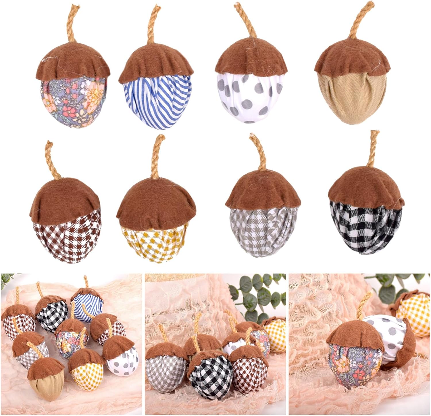 Queste decorazioni da appendere possono decorare l'albero del Ringraziamento, abbellire le ciotole o i tavoli e migliorare il soggiorno, gli studi o la camera da letto con ambienti autunnali Aumenta i tuoi decori con 8 nuclei artigianali, mix di rustici e design eleganti per le tue celebrazioni del Ringraziamento Adatto per gli amanti dell'artigianato e per coloro che apprezzano la bellezza delle decorazioni fatte a mano, aggiungono a queste decorazioni un tocco personalizzato per chiunque sia in casa per celebrare la vacanza Queste decorazioni in tessuto sono realizzate meticolosamente con materiali di qualità, con colori beige che resistono allo sbiadimento e assicurano che rimangano saldamente nelle vostre decorazioni anno dopo anno Indipendentemente da