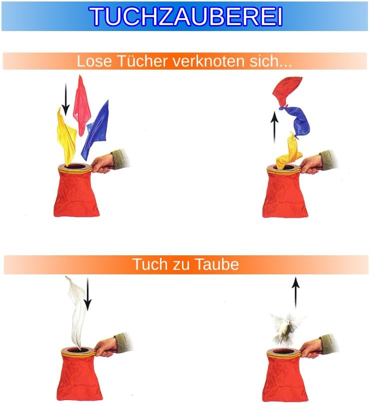 ✅ MAGIA SENZA SFORZO: Questa borsa magica è un oggetto di scambio con la magia per trasformazioni facili senza alcuna destrezza - ideale per maghi e chiunque voglia diventarlo ✅ VERSATILE E FACILE: Incanta con panni, banconote, carte e altro (NON inclusi) - grazie alla funzione di ripetizione per una magia infinita ✅ TRUCCHI DI MAGIA IN LINGUA TEDESCA: Dispositivo magico universale con manico in legno e borsa di velluto, costellato di elementi decorativi a contrasto. Istruzioni in tedesco per una magia senza sforzo e senza alcuna conoscenza preliminare ✅ EFFETTO MAGICO WOW: trasforma oggetti più piccoli in un batter d'occhio - un'esperienza magica per momenti magici ✅ FUNZIONAMENTO CON UNA SOLA MANO: Change Bag Repeat - il tuo assistente personale del mago che può essere azionato con una mano, per innumerevoli spettacoli e un pubblico entusiasta