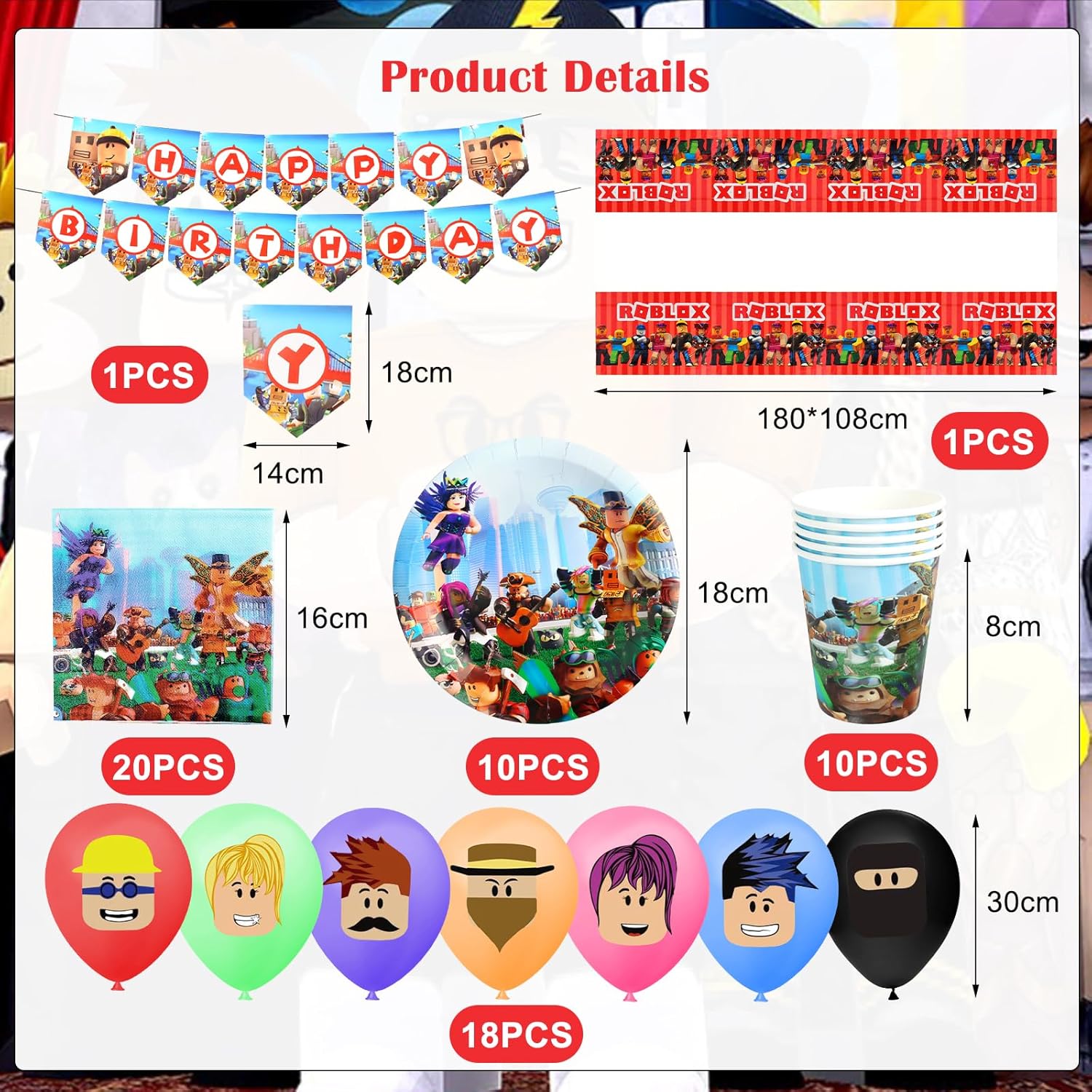 【Set di stoviglie per feste Roblox】: la decorazione di compleanno Roblox contiene: 10 piatti, 10 tazze, 20 tovaglioli, 1 tovaglia, 1 striscione, 14 palloncini in lattice, 1 rotolo di nastro. Adatto per 10 ospiti. 【Materiali di alta qualità】: le nostre stoviglie per il compleanno sono realizzate in materiale addensato, robusto e durevole. I Roblox palloncini sono realizzati in lattice alta qualità. 【Design raffinato】: il tema dei cartoni animati è molto popolare tra i bambini di tutte le età. Le forniture per feste Roblox sono stampate con simpatici personaggi dei cartoni animati, perfetti per le decorazioni delle feste di compleanno. Regala ai tuoi figli ricordi indimenticabili. 【Facile da usare】: il set di stoviglie per feste di compleanno per bambini è facile da trasportare, sia all'interno che all'esterno, è facile da decorare. Potrai organizzare una festa piena di sorprese in poco tempo e fare ordine velocemente dopo la festa. Ciò fa risparmiare tempo ed energia a te e alla tua famiglia e garantisce una giornata indimenticabile per te e la tua famiglia! 【Ampia applicabilità】: i nostri set per feste possono essere utilizzati non solo per feste di compleanno, ma anche per feste a tema, decorazioni di compleanno per bambini, feste di Pasqua, feste di Halloween, feste di Natale, ecc. Può soddisfare le diverse esigenze delle feste di persone di diverse età.