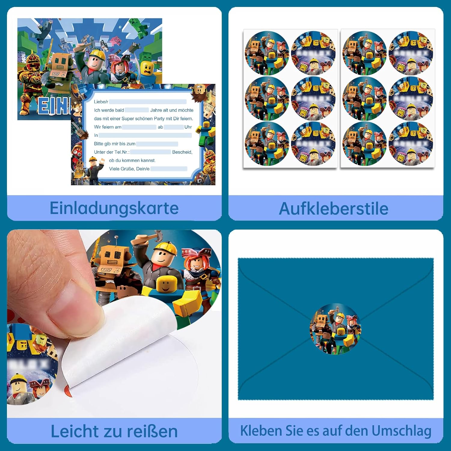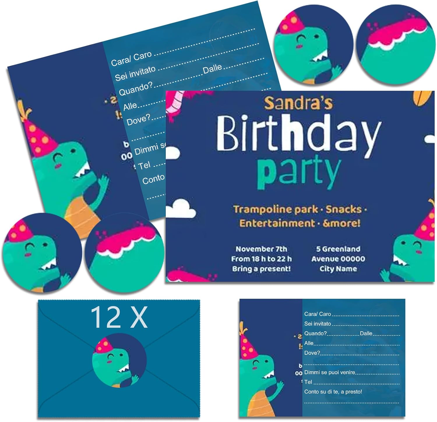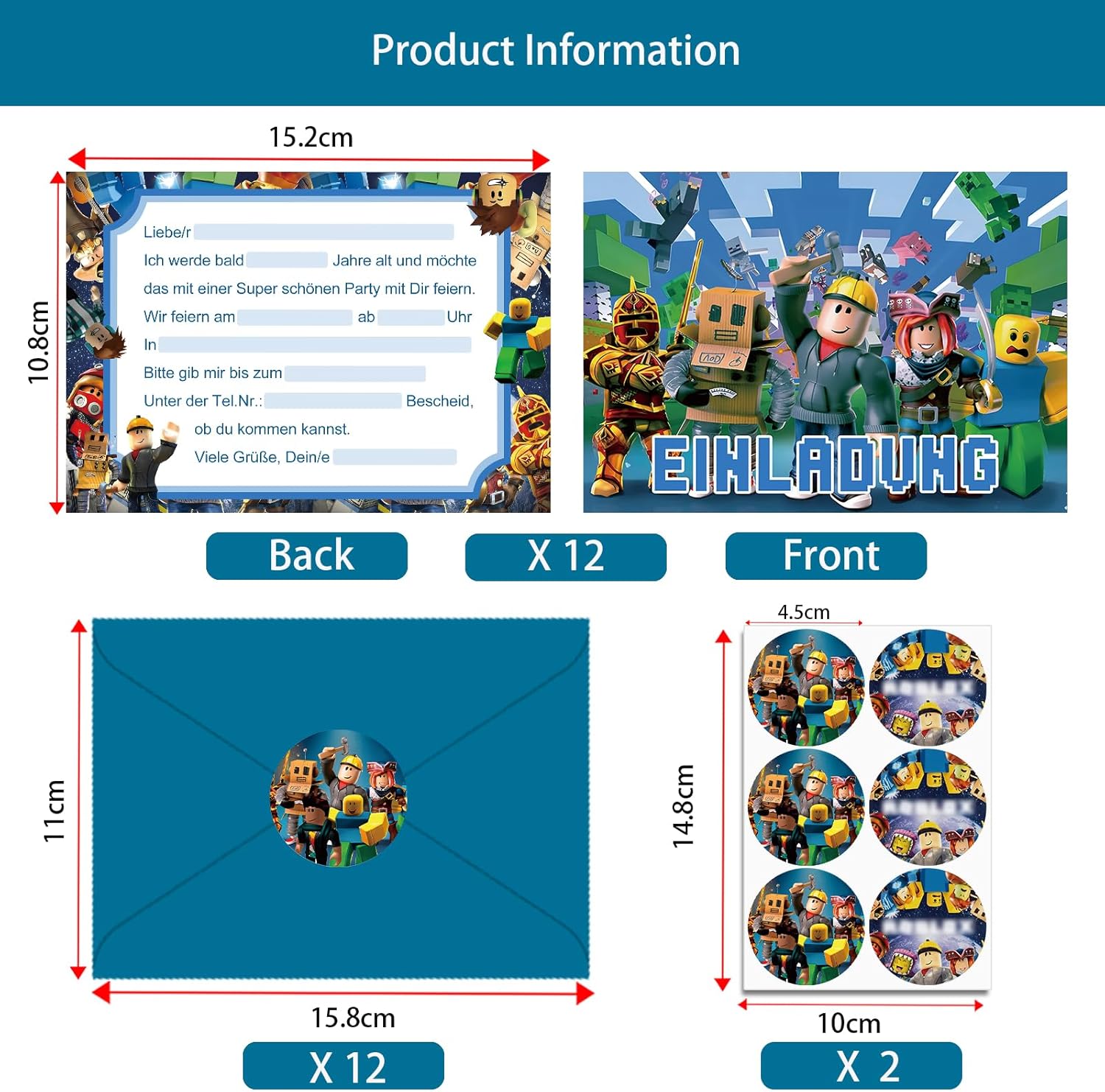 Set di biglietti di invito per feste: 12 biglietti di invito, 12 buste e 12 adesivi. Dimensioni dei biglietti d'invito per bambini: circa 15,2 x 10,7 cm, è perfetto come biglietto di invito per feste per i vostri colleghi e amici. (versione tedesca) Facile da compilare: l'area vuota del biglietto può essere riempita rapidamente con testo di invito facile da capire, per inviare il vostro umore gioioso in parole agli amici e persino disegnare alcune cose interessanti sulla busta. Materiale di alta qualità: i biglietti di invito per il compleanno dei bambini sono realizzati in carta di alta qualità. La carta è dura con disegni colorati su entrambi i lati, non si stropiccia facilmente, chiaramente stampato e squisitamente bello. Design unico: i biglietti d'invito sono progettati con un classico tema cartone animato con buste in colori comuni, per una festa visiva. Ampiamente utilizzato: che si tratti di compleanno per bambini, feste in giardino, feste in piscina, feste a tema o feste per bambini, possiamo utilizzare i nostri biglietti di invito per inviare inviti alle feste agli amici.