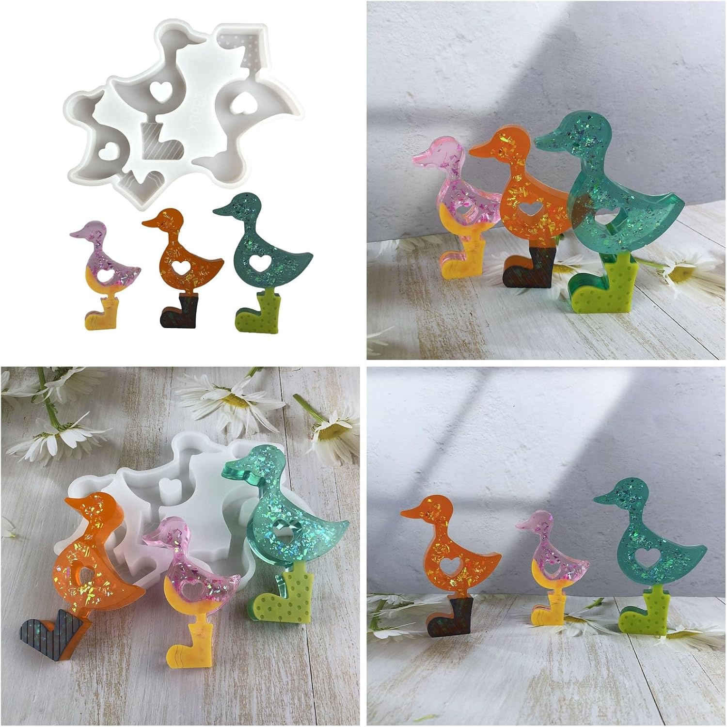 Crea realistici ornamenti di anatre con il nostro robusto stampo in silicone progettato per durare e facile rilascio, per garantire risultati perfetti ogni volta Perfetto per gli amanti dell'artigianato, esperti di artigianato per case e produttori di regali che vogliono espandere i loro progetti creativi Ideale per la decorazione della casa, la produzione di regali per le vacanze e l'innovativa aula artigianale, offre infinite possibilità di espressione artistica Trasforma la tua esperienza di artigianato con questa forma versatile, un must, uno strumento per accessori di gioielli e essenziale per qualsiasi kit di strumenti creativi Questo stampo in silicone flessibile e resistente al calore è ideale per colata con vari materiali e cattura complicati