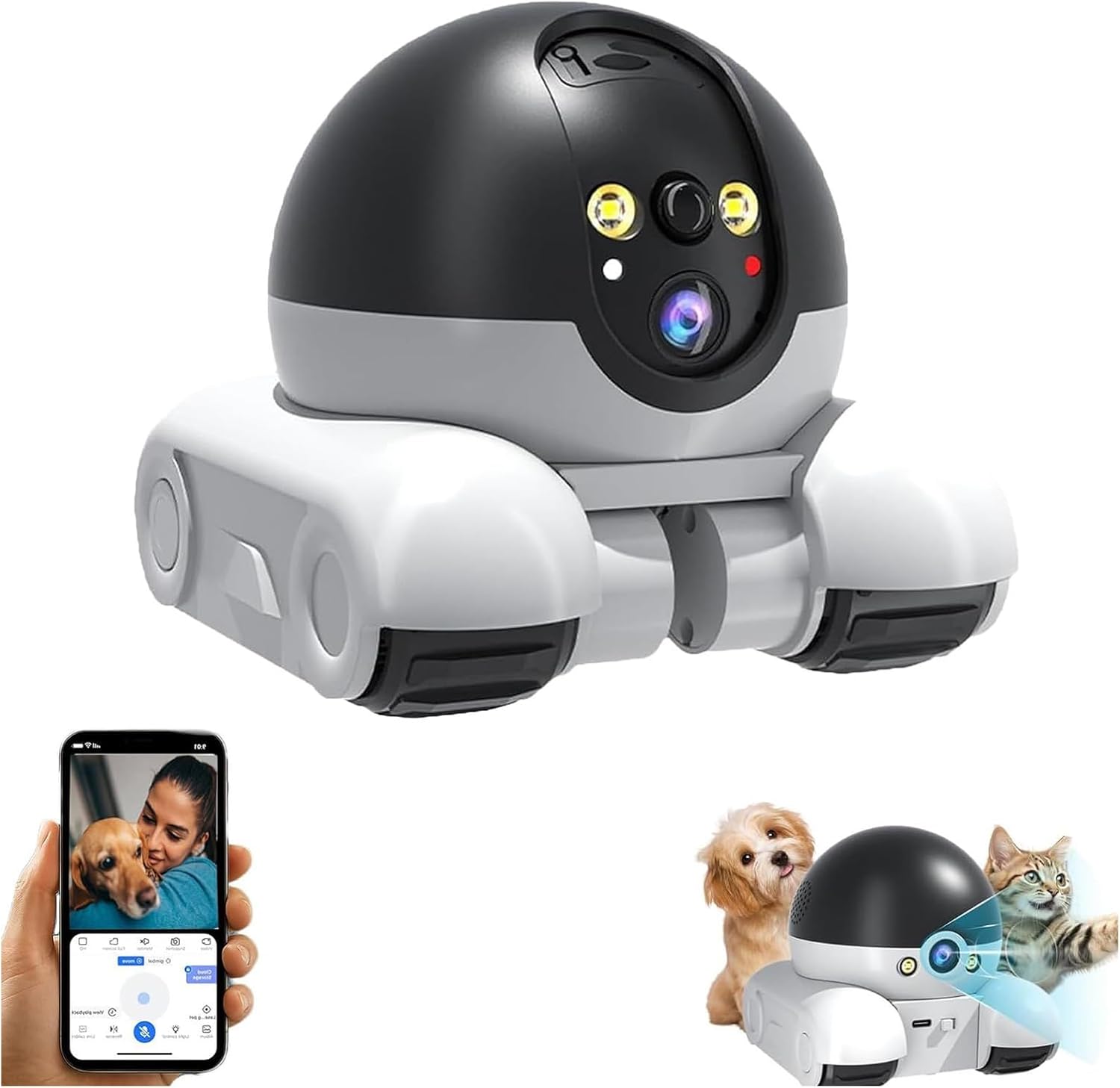 Comando Remoto: Offre comunicazione nitida abbinata a controllo a distanza, navigazione applicazione e localizzazione animale in reale per maggiore comodità e interazioni reattive con il tuo animale domestico Rilevamento Movimento Intelligente: Telecamera robot con chip di rilevamento movimento e inseguimento automatico abilitato all'intelligenza artificiale, promuove l'interazione live con animali domestici tracciando con precisione ogni movimento durante i giochi Mobilità Adattiva: Progetto di bilanciamento robusto che agevola la funzionalità in contesti multipli, facilita il superamento di tappeti e soglie garantendo prestazioni superiori su tutti i tipi di terreno Efficienza Energetica: Ottimizzato per minimi consumi, offre riserva elettrica di 60 giorni e funziona in modalità a basso consumo per prestazioni prolungate e affidabili nel Lenti Doppie Rotanti: Utilizza lenti doppie rotanti per monitoraggio 360 garantendo copertura panoramica estesa e assenza di aree non visibili durante l'uso