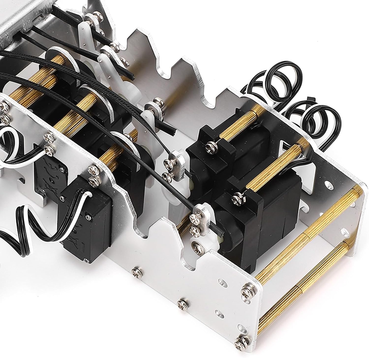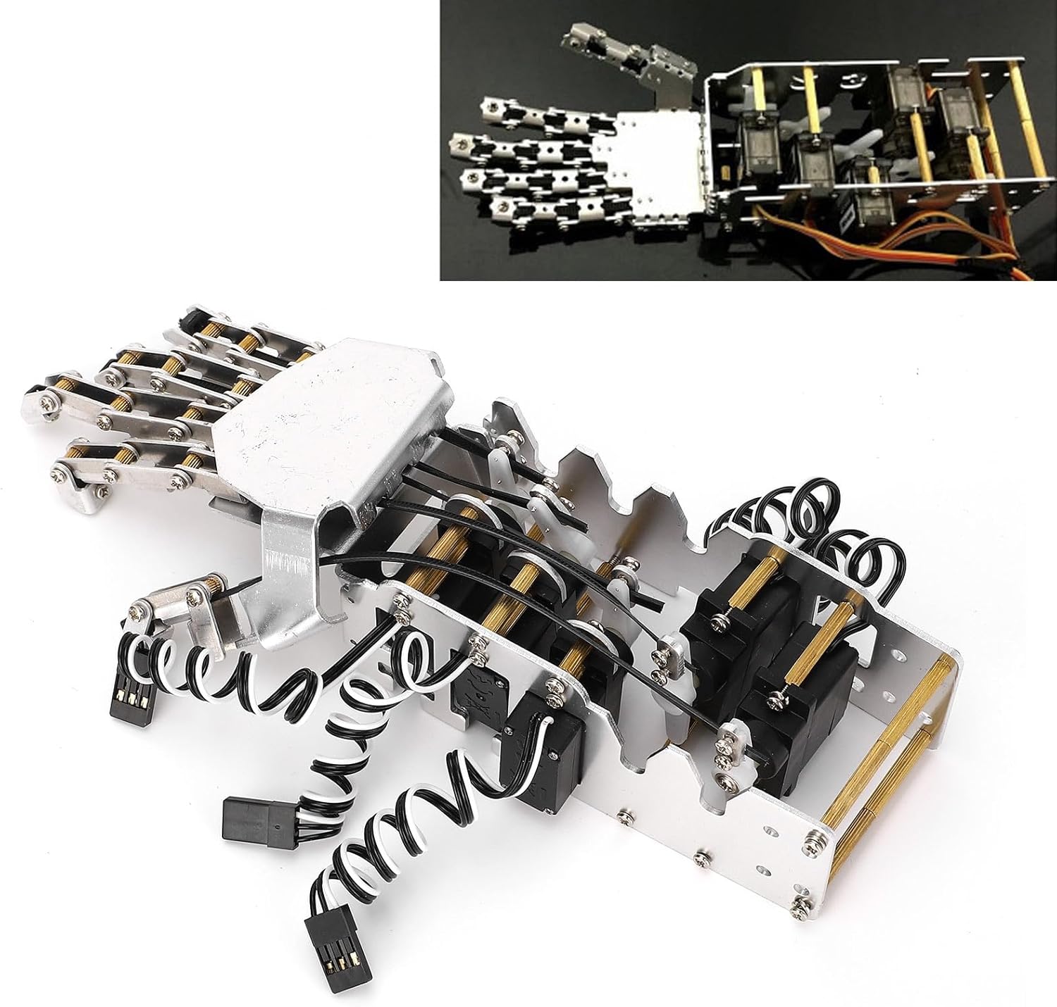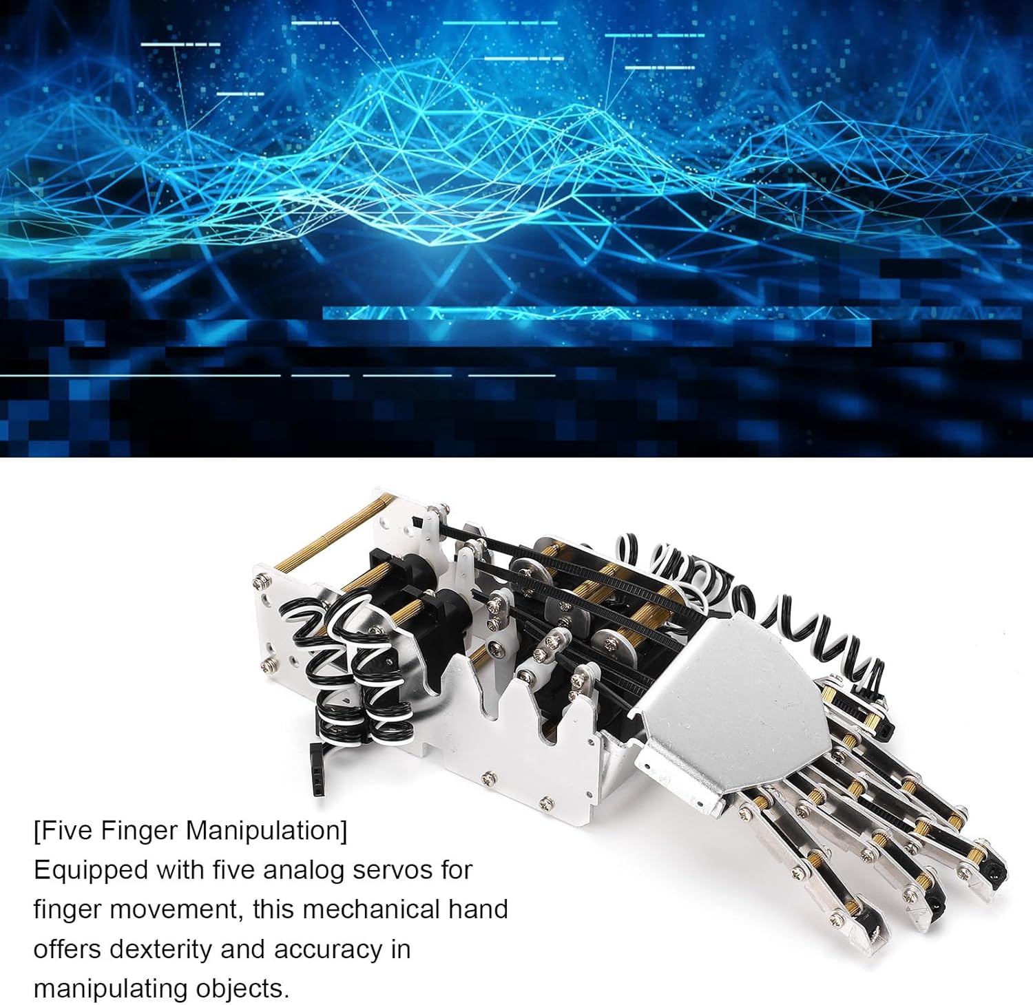[Complete Robot Hand Kit] This robotic hand kit includes all the necessary parts for assembly, providing a comprehensive assemble experience for users. [1/1 Scale Design] This mechanical hand features 1/1 scale, allows for 180 degree finger movement, offering a real and interactive experience. [Five Finger Manipulation] Equipped with five analog servos for finger movement, this mechanical hand offers dexterity and accuracy in manipulating objects. [Reliable Construction] This robotic hand is constructed with acrylic and aluminum alloy brackets, enhancing structural integrity and performance, ensuring long lasting use. [Supports Secondary Development] This mechanical hand kit supports secondary robot development, encourages experimentation and innovation in robotics projects.