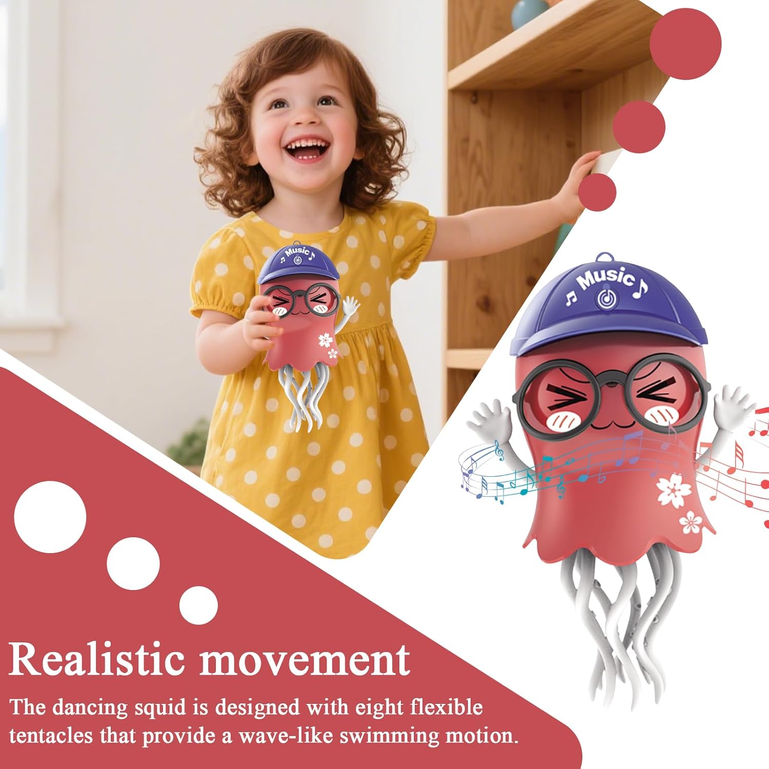Movimento Intelligente Ostacoli: Questo giocattolo polpo utilizza un di sensori avanzato per individuare gli ostacoli e navigare le stanze con movimenti scorrevoli, creando un ambiente sicuro per i bambini per esplorare e giocare durante attività indoor o momenti di quiete, con esplorazione continua e intrattenimento senza intoppi in spazi come salotti o zone gioco, garantendo divertimento duraturo. Gioia Rinfrescante: Il giocattolo polpo per bambini è dotato di una funzione di spray nebulizzato che crea un effetto di acqua fresca, migliorando il gioco collaborativo familiare in interni ed esterni. Mantiene i bambini intrattenuti e li rinfresca nelle giornate calde durante attività in giardino o in piscina, assicurando momenti di puro divertimento. Questo giocattolo acqua offre un'esperienza rinvigorente che invita al gioco attivo e alla condivisione, per le feste estive e Compagno Leggero per Avventure: Il polpo funge da compagno ideale per campeggio e picnic in spiaggia, offrendo portabilità leggera e comodità di trasporto. Migliora il relax all'aperto e le attività divertenti al mare senza fastidi aggiuntivi o ingombri, rendendolo un must-have per la prossima avventura acquatica. La sua praticità nel trasporto lo rende facile da portare ovunque, arricchendo i momenti ricreativi con gioia e semplicità. Intensifica l'Atmosfera Sognante: Il giocattolo polpo vanta un bagliore non irritante con luci sfumate a sette colori che un'atmosfera sognante, promuovendo lo sviluppo sensoriale mentre offre comfort calmante per l'ora della nanna per bambini in ambienti con poca luce. Ideale per uso notturno, le luci tenui e le transizioni graduali contribuiscono a un'esperienza rilassante che aiuta a ridurre l'ansia e favorire un sonno profondo, con un glow delicato che enhance la serenità not Movimento Dinamico: Il polpo offre otto tentacoli flessibili con un movimento ondulatorio in stile medusa, accendendo l'immaginazione e incoraggiando i bambini a osservare i dettagli, garantendo ore di divertimento mentre supporta lo sviluppo cognitivo in contesti creativi, con un design accattivante che promuove l'interazione giocosa e le abilità osservative, ideale per esplorare la fantasia in modo coinvolgente e educativo.
