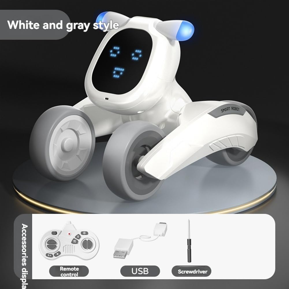 3. Interazione genitore-figlio, nuovi animali domestici intelligenti e scientifici, compagni di gioco premurosi e interazioni diverse. 4. Rilevamento del tocco, interazione divertente, toccando la testa, il cane telecomandato attiva la funzione di dimostrazione automatica. 1. Registrazione/riproduzione, commutazione Audio, programmazione, musica, presentazione automatica, funzione touch (presentazione automatica). 2. Dialogo intelligente controllato vocalmente, che sblocca un modo di interazione, 12 comandi vocali, possono essere utilizzati per il dialogo, il cane intelligente risponde in base ai comandi vocali ricevuti. 5. Funzione di programmazione intelligente, un piccolo insegnante che illumina il tuo pensiero, ti consente di combinare liberamente più azioni di ed eseguirle, liberando la tua immaginazione e creatività, regalandoti un divertimento fine.