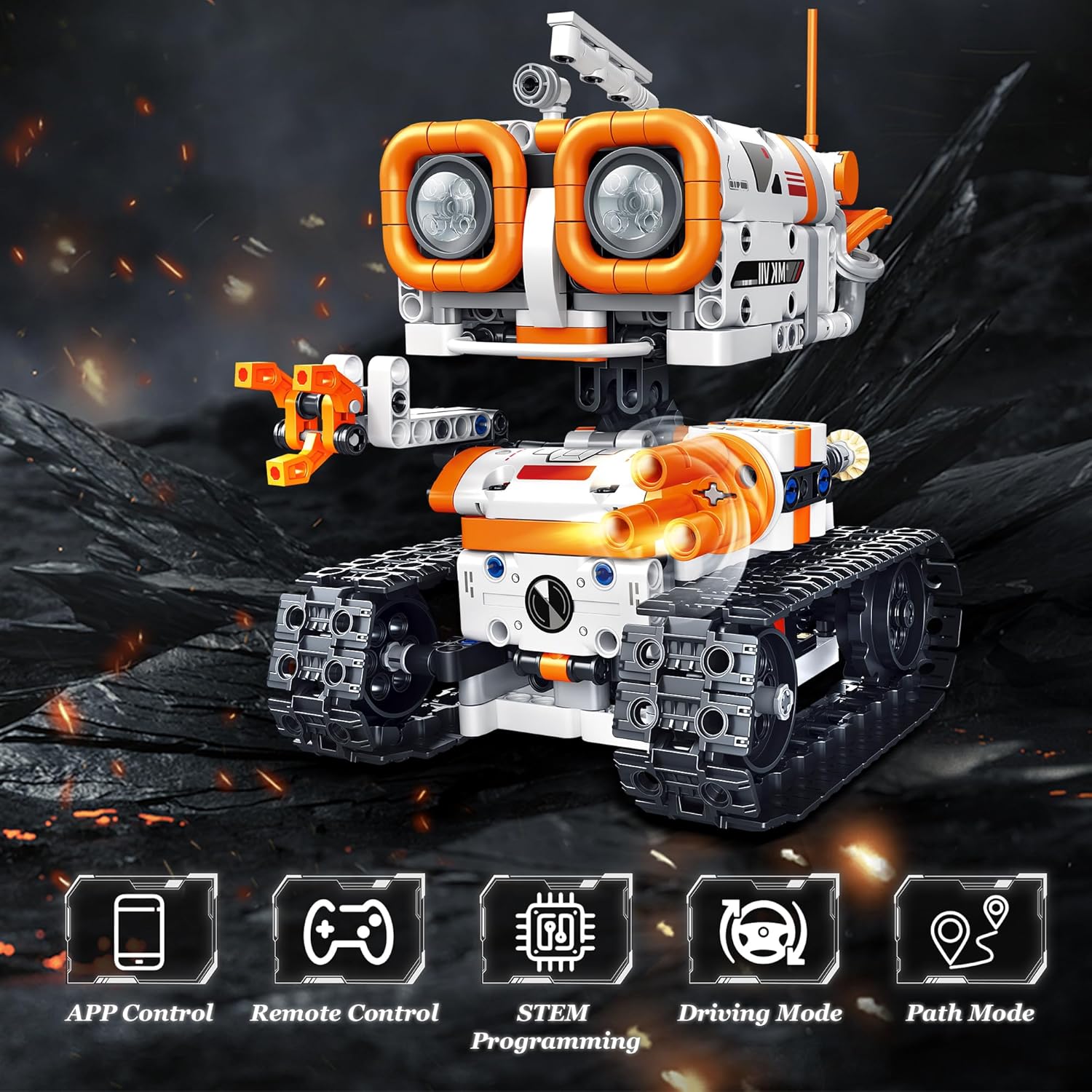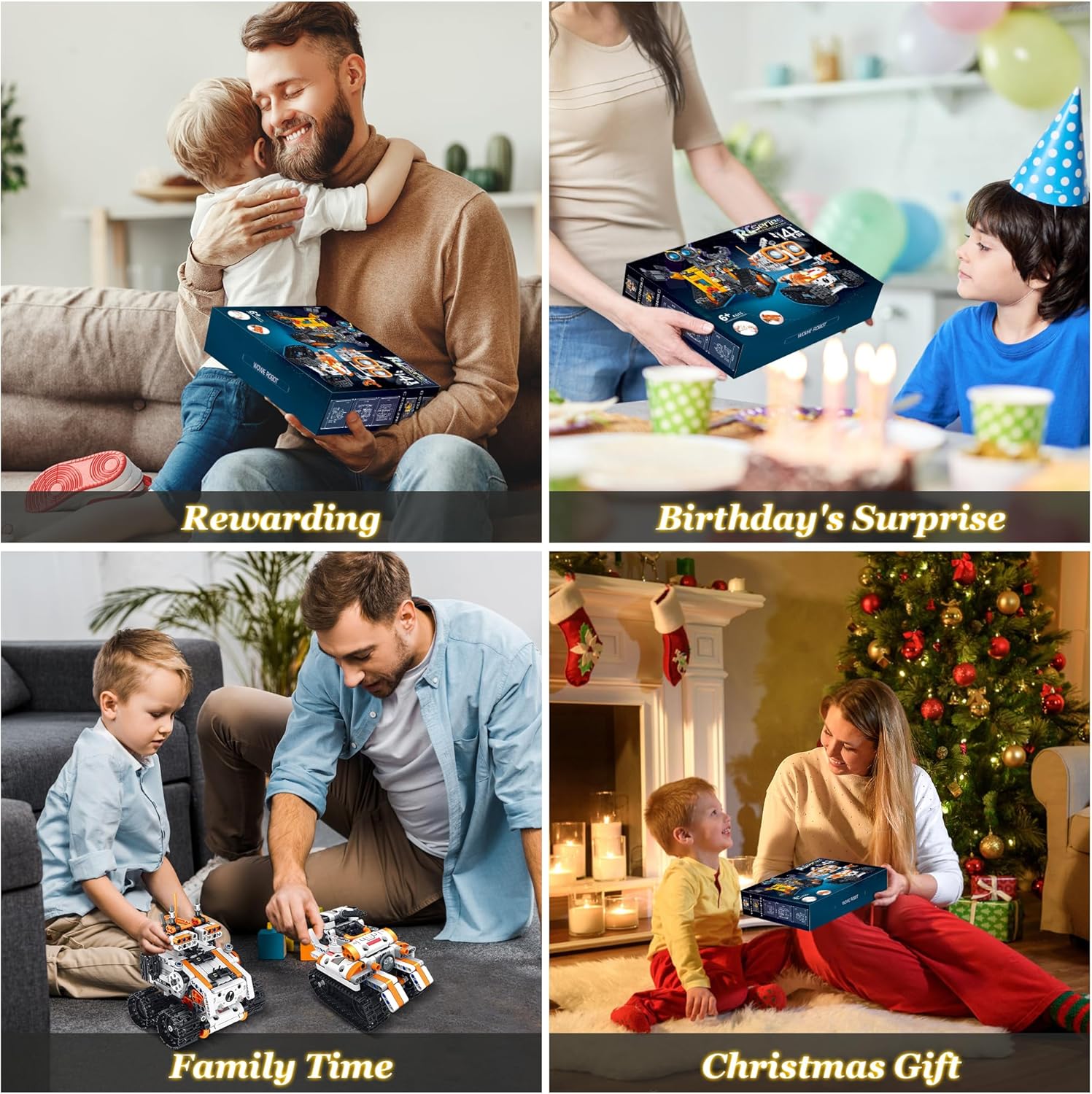 【Kit robot da costruzione RC 4 in 1】Il nostro set di blocchi da costruzione per robot ha 560 blocchi da costruzione, che possono essere assemblati in 4 diversi stili di giocattoli robot e godere di 4 diverse esperienze di costruzione e gioco. (È possibile creare un solo modello alla volta). Dai libero sfogo all'immaginazione dei bambini e offri loro ore di divertimento! 【Design unico】La combinazione di blocchi di costruzione e robot telecomandati, forma unica e un design pieno di senso meccanico tecnologico. Giunti flessibili, testa e mani rotanti, ruote cingolate, possono funzionare senza problemi su qualsiasi terreno. I bambini possono comprendere la meccanica e i meccanismi di movimento durante il processo di assemblaggio e coltivare la loro creatività e immaginazione. Tenere i bambini lontani dallo schermo. 【Controllo remoto e tramite app】Questo robot può essere controllato tramite telecomando o connessione APP per controllare il kit robot. L'APP può realizzare più modalità di controllo remoto: modalità di guida, modalità percorso, sensore di gravità e modalità di programmazione. Semplice e facile da usare. Offre un'esperienza di gioco senza pari! 【Giocattoli creativi】Questo è un giocattolo creativo adatto a bambini di età compresa tra 5 e 14 anni, che stimola la loro immaginazione, li aiuta a imparare ad assemblare, creare e giocare e stimola il loro interesse per i concetti di programmazione dell'apprendimento precoce. I nostri blocchi di costruzione sono realizzati con cura in plastica ABS atossica di alta qualità, compatibile e facile da collegare, non facile da rompere e anche resistente all'usura e durevole. 【Regalo ideale per bambini】Confezione squisita, robot fantastici e l'ingegnosità dei mattoncini e dei robot lo rendono un regalo da sogno per i bambini. Adatto come regalo per ragazzi o ragazze dai 5 ai 14 anni. Ideale per regali di compleanno, Halloween, Natale, festa dei bambini e altre feste
