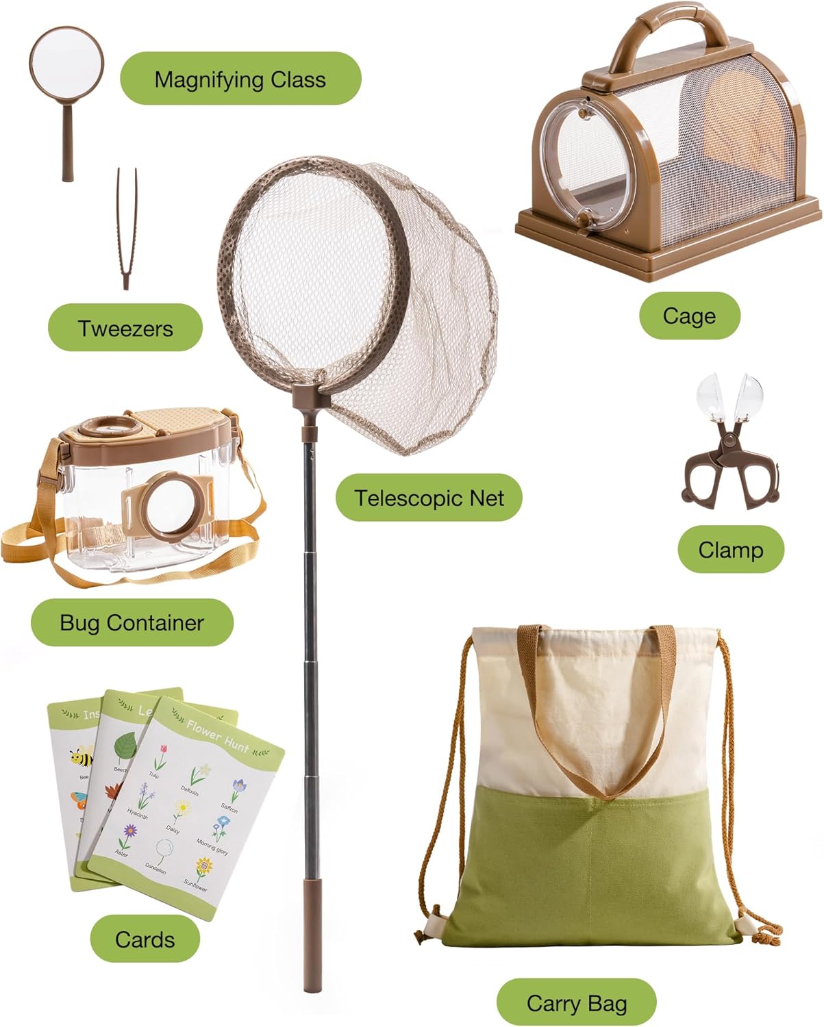 🗺️ Suscita curiosità - Il set di scoperta ROBOTIME per bambini è progettato per stimolare la curiosità e ispirare l'amore per le avventure all'aria aperta. 🔎 Set avventura tutto in uno - Il set comprende una lente d'ingrandimento per osservazioni ravvicinate, una rete telescopica, pinzette, un morsetto, una gabbia, un contenitore, mappe e una custodia per il trasporto. Contiene tutto ciò di cui i bambini hanno bisogno per immergersi in emozionanti esplorazioni all'aria aperta con un divertimento senza fine. 🌿 Educativo e divertente - Il set da campeggio per i più piccoli è più di un semplice giocattolo. Offre valore educativo attraverso un gioco emozionante e interattivo. I bambini sviluppano abilità importanti come la risoluzione dei problemi e l'osservazione divertendosi a scoprire cose nuove. 🌟 Alta qualità – Ogni articolo è realizzato con materiali durevoli che possono resistere al gioco all'aperto. Le dimensioni e il peso dei dispositivi sono perfettamente adatti alle mani piccole. 🎁 Regalo perfetto: che si tratti di un compleanno, di una vacanza o di un'occasione speciale, il Kids Explorer Kit è un'ottima scelta regalo. Incoraggia i bambini a uscire, esplorare la natura e sviluppare un senso di meraviglia.