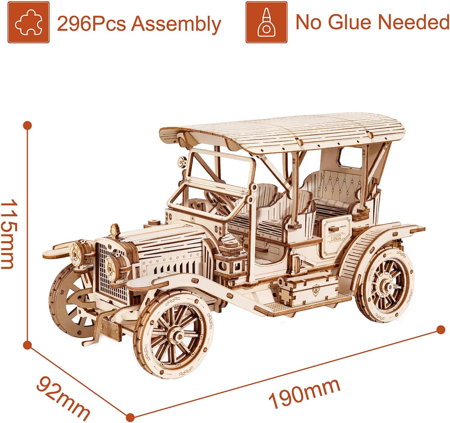 ⚙️[KIT MODELLO DI AUTO D'EPOCA] - Questo puzzle 3D mostra un modello secolare: un'auto d'epoca, molto caratteristica dell'era industriale. Il kit modello ricrea perfettamente vari dettagli dell'auto d'epoca in scala 1:15. ⚙️[ FACILE DA ASSEMBLARE ] - Questo kit modello è composto da un totale di 296 parti e include istruzioni in inglese illustrate facili da seguire. Ci vogliono circa 3 ore. Forniamo pezzi di ricambio gratuitamente a vita. Se avete domande durante il processo di assemblaggio, non esitate a contattarci. ⚙️[ALTA QUALITÀ] - Questo kit modello in legno utilizza la tecnologia di taglio laser. La tavola non ha sbavature e non fa male alle mani. Materiali sicuri e controllo di qualità più rigoroso. Avrai una buona esperienza di costruzione. ⚙️[GIOCATTOLO EDUCATIVO] - Questo è il set puzzle in legno perfetto per adolescenti e adulti! Possiedilo per sviluppare l'hobby di costruire puzzle 3D. Promuove la pazienza e le capacità di cooperazione occhio-mano. ⚙️[REGALO UNICO] - Il kit può essere utilizzato non solo come decorazione per la stanza. È anche un compleanno a sorpresa e un regalo di Natale per famiglie e amici.