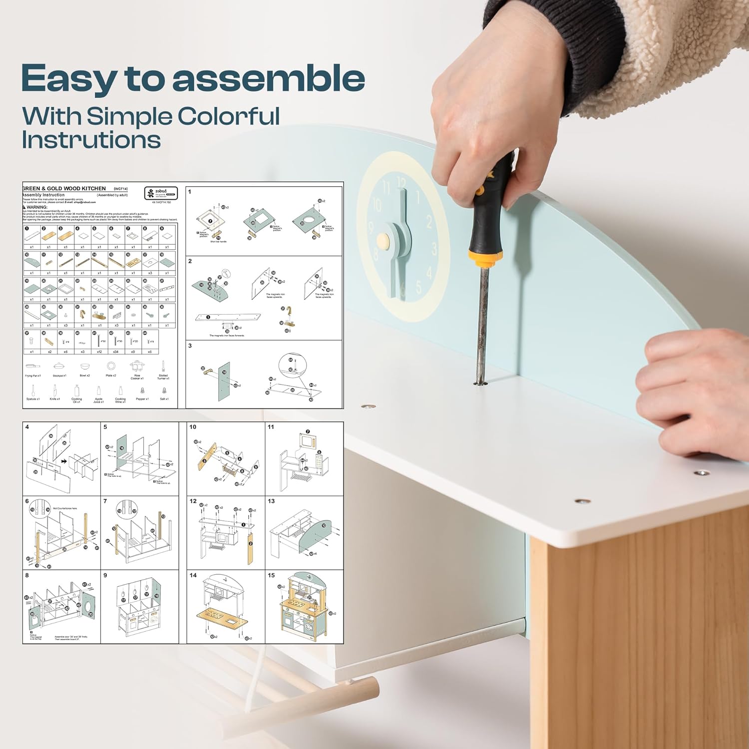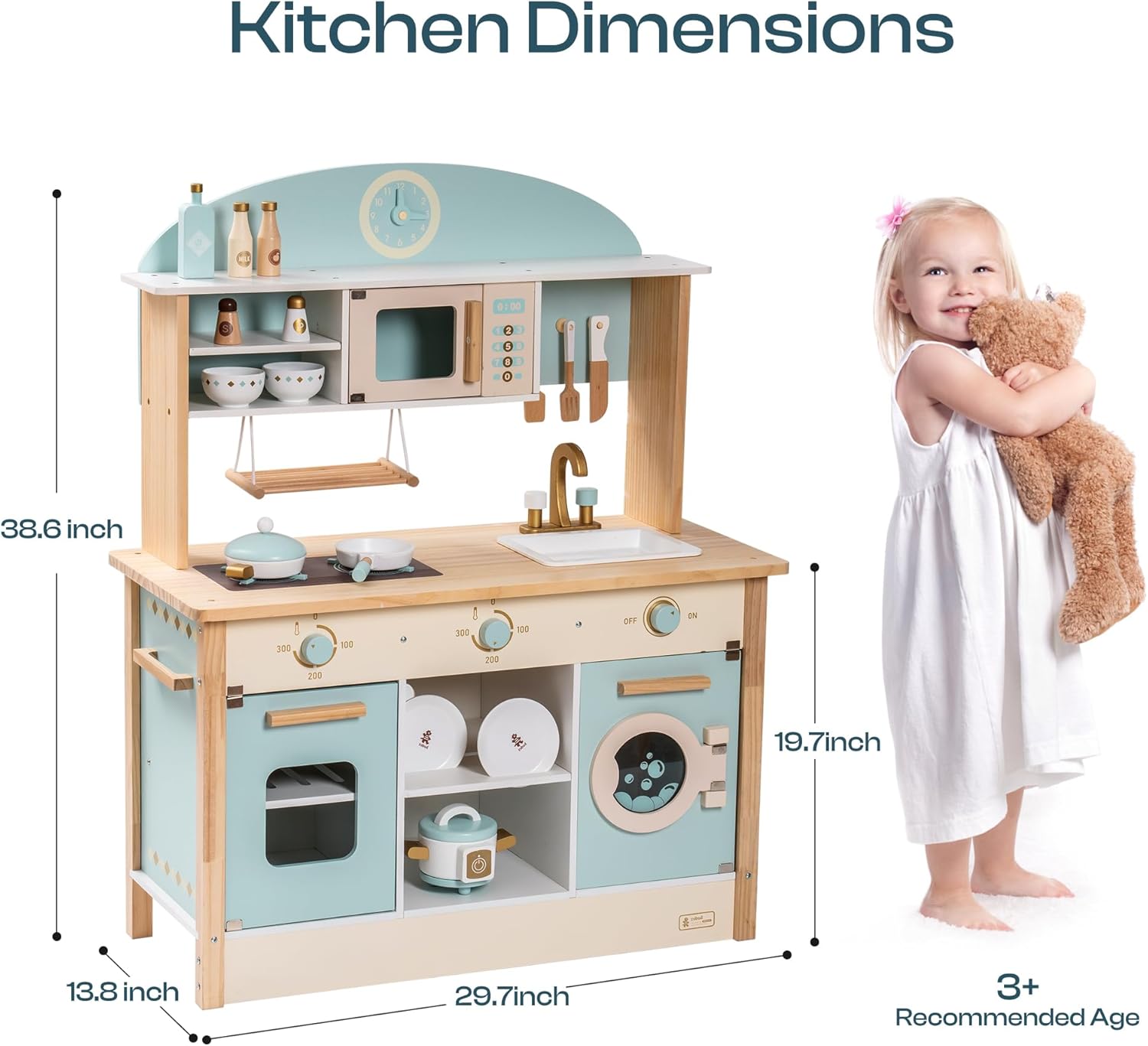 Legno naturale resistente: questo set da cucina da gioco è realizzato in legno naturale di alta qualità ed è particolarmente robusto e durevole. Fornirà divertimento senza fine per gli anni a venire. Divertimento creativo: con il nostro set di giochi da cucina verde, i bambini possono vestire i panni di uno chef e dare libero sfogo alla loro immaginazione. Promuove le abilità sociali e l'espressione dei bambini mentre presentano piatti deliziosi ai loro genitori, fratelli o amici. Colori allegri: i bambini adorano i giocattoli colorati, quindi abbiamo progettato il nostro set da cucina con colori allegri. Ciò rende il gioco due volte più divertente e promuove comportamenti positivi. Divertimento in cucina per i più piccoli: i più piccoli potranno cimentarsi nel ruolo di chef e preparare deliziosi “piatti”. I genitori possono giocare insieme ai loro bambini e godersi il tempo felice, oppure i bambini possono giocare in modo indipendente mentre i genitori si prendono una piccola pausa. REGALO PERFETTO: questo meraviglioso set da cucina da gioco è un regalo ideale per bambine e bambini. Che si tratti di compleanno, onomastico, festa, Natale o Ringraziamento, con questo set potrete incoraggiare giochi di ruolo culinari creativi e regalare ai vostri bambini tanta gioia.