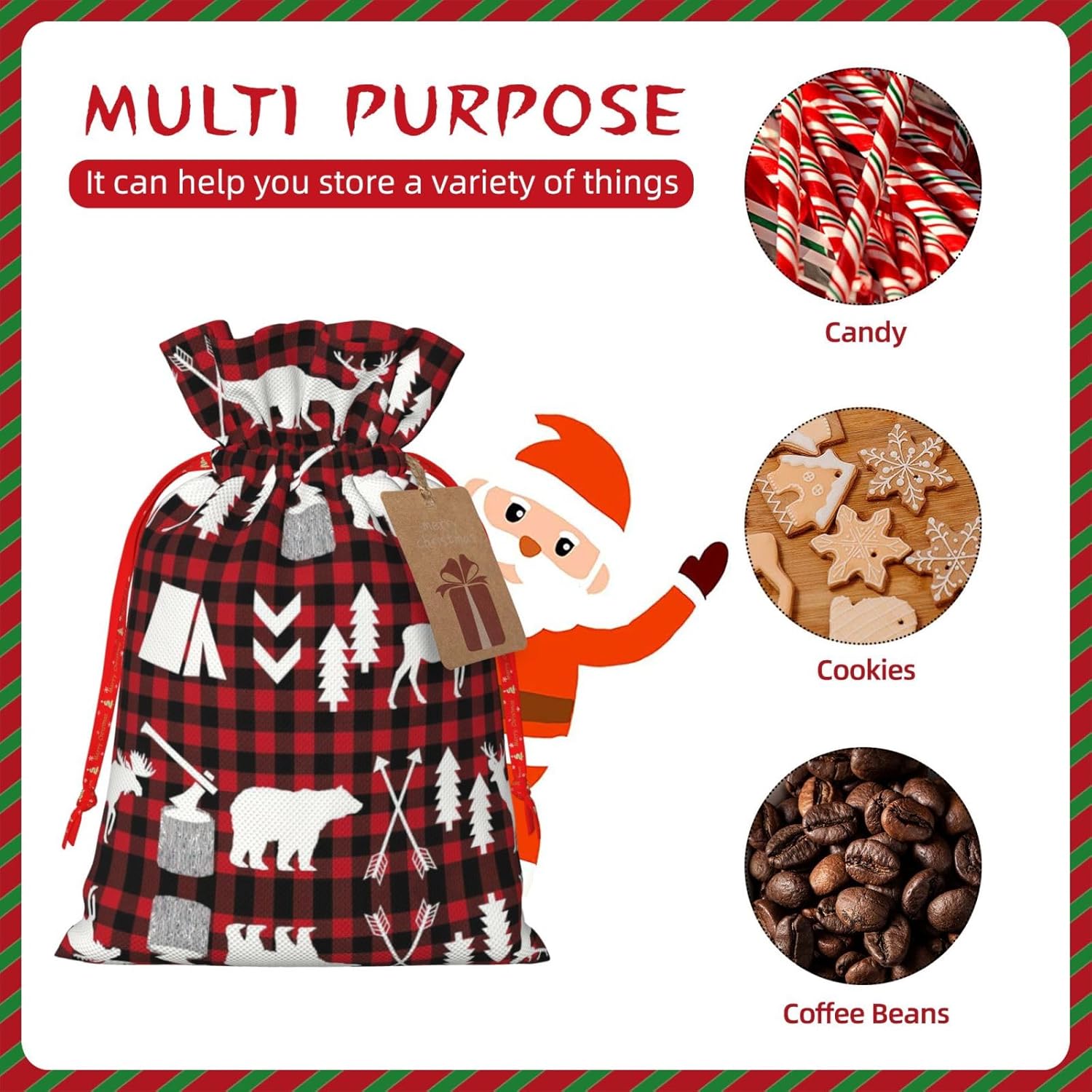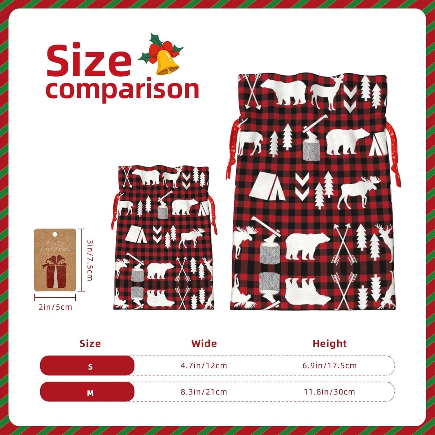 SACCHETTI REGALO DI ALTO VALORE: il sacco natalizio con mucca e cervo è dotato di sacchetti regalo con cordoncini colorati ed etichette. I sacchetti regalo sono aggiornati con un design con chiusura a coulisse, sacchetti regalo realizzati in poliestere, resistenti e riutilizzabili. Non si strappano come la carta, ottimi per incartare i regali. 10 secondi per incartare un regalo: il sacchetto natalizio con mucca e cervo per confezionare facilmente i regali, è facile da usare, basta inserire il regalo nei sacchetti, far scorrere l'etichetta regalo attraverso il nastro, tirare il nastro, annodare un fiocco e il gioco è fatto. Puoi evitare il fastidio associato a carta da imballaggio, forbici, nastro adesivo e nastro, risparmiare tempo e molto conveniente. Dimensioni del sacchetto regalo: i sacchetti regalo in 2 dimensioni possono soddisfare le preferenze di diverse persone e sono sufficienti per l'uso quotidiano e la festa di Natale. La S misura 12 x 17,5 cm e la M misura 12 x 30 cm. Sacchetti regalo in formati assortiti sfusi, perfetti per confezionare regali di diverse dimensioni. Regalo nel regalo: questi sacchetti regalo natalizi con mucca e cervo possono essere riutilizzati molte volte. Un set di sacchetti regalo riutilizzabili sarà un'aggiunta meravigliosa a qualsiasi regalo e migliorerà l'esperienza complessiva del regalo. Inoltre, abbiamo rinforzato il fondo per una maggiore stabilità e una struttura robusta con carichi pesanti. Non facile da rompere per un uso durevole e duraturo. Sacchetti regalo multifunzionali: questi sacchetti natalizi con mucca e cervo possono essere utilizzati per conservare regali di Natale, giocattoli, bambole, cappelli natalizi, caramelle e regali durante una festa di Natale. Conservare i regali in questa borsa darà ai bambini più sorprese perché non sanno cosa c'è dentro.