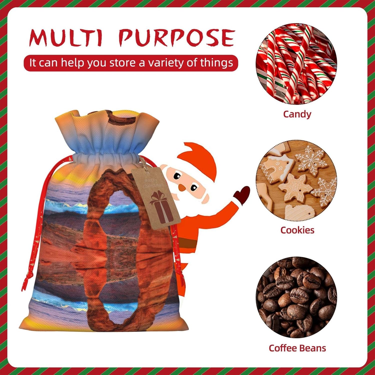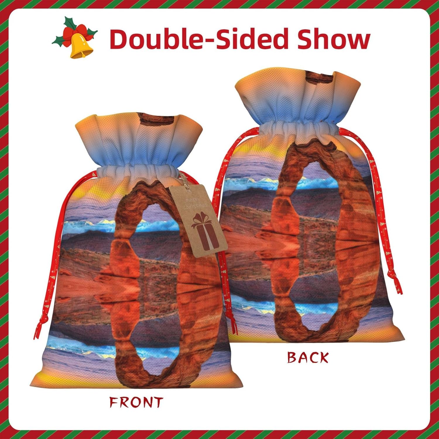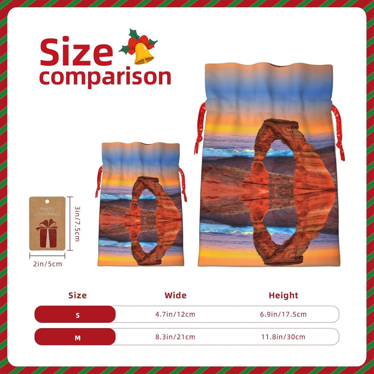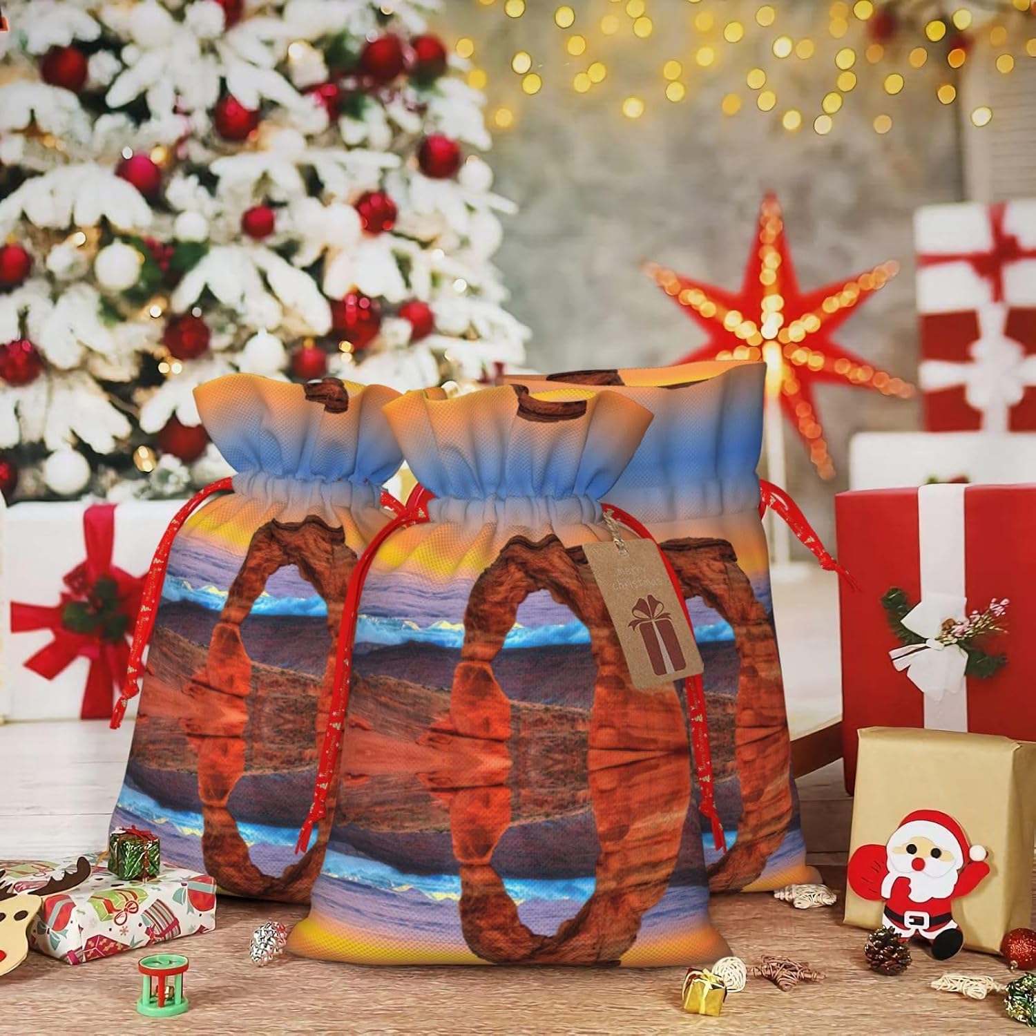 BORSE REGALO DI ALTO VALORE: la borsa Arches National Park è dotata di sacchetti regalo con cordoncini colorati ed etichette. I sacchetti regalo sono aggiornati con un design con chiusura a coulisse, sacchetti regalo realizzati in poliestere, resistenti e riutilizzabili. Non si strappano come la carta, ottimi per incartare i regali. 10 secondi per incartare un regalo: borsa Arches National Park per confezionare facilmente i regali, è facile da usare, basta inserire il regalo nelle buste, far scorrere l'etichetta regalo attraverso il nastro, tirare il nastro, annodare un fiocco e il gioco è fatto. Puoi evitare il fastidio associato a carta da imballaggio, forbici, nastro adesivo e nastro, risparmiare tempo e molto conveniente. Dimensioni del sacchetto regalo: i sacchetti regalo in 2 dimensioni possono soddisfare le preferenze di diverse persone e sono sufficienti per l'uso quotidiano e la festa di Natale. La S misura 12 x 17,5 cm e la M misura 12 x 30 cm. Sacchetti regalo in formati assortiti sfusi, perfetti per confezionare regali di diverse dimensioni. REGALO NEL REGALO: questi sacchetti regalo del Parco Nazionale degli Arches possono essere riutilizzati molte volte. Un set di sacchetti regalo riutilizzabili sarà un'aggiunta meravigliosa a qualsiasi regalo e migliorerà l'esperienza complessiva del regalo. Inoltre, abbiamo rinforzato il fondo per una maggiore stabilità e una struttura robusta con carichi pesanti. Non facile da rompere per un uso durevole e duraturo. Sacchetti regalo multifunzionali: questi sacchetti regalo di Natale possono essere utilizzati per conservare regali di Natale, giocattoli, bambole, cappelli di Natale, caramelle e regali durante una festa di Natale. Conservare i regali in questa borsa darà ai bambini più sorprese perché non sanno cosa c'è dentro.