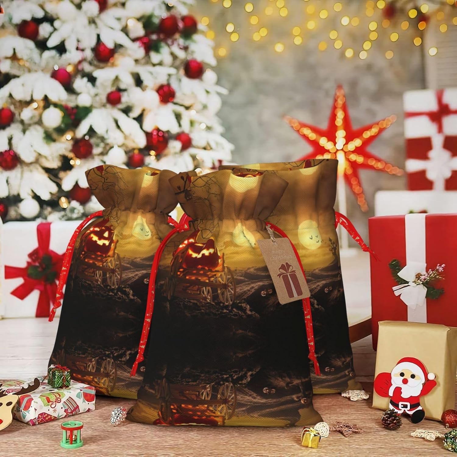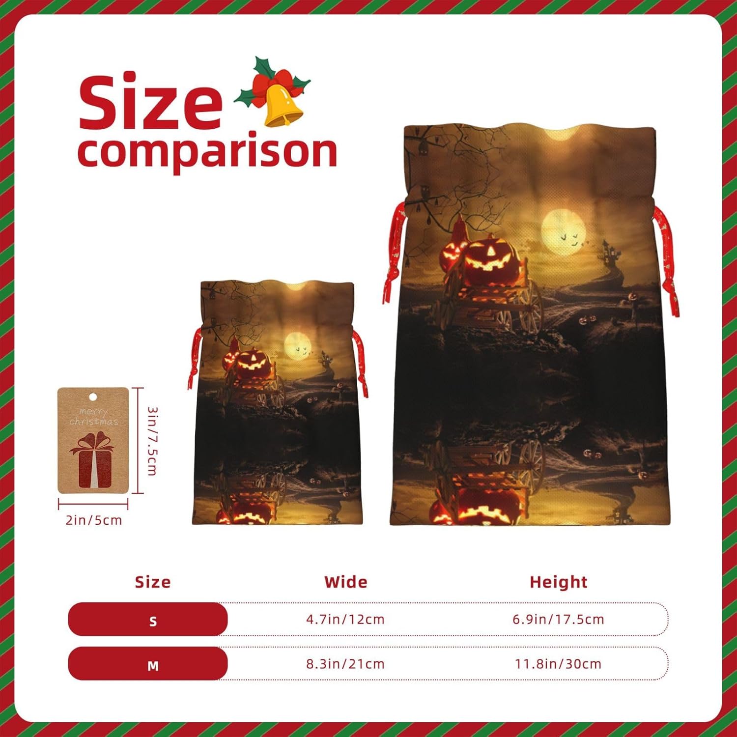 Sacchetti regalo di grande valore: la borsa con zucca di Halloween è dotata di sacchetti regalo con cordoncini colorati ed etichette. I sacchetti regalo sono aggiornati con un design con chiusura a coulisse, sacchetti regalo realizzati in poliestere, resistenti e riutilizzabili. Non si strappano come la carta, ottimi per incartare i regali. 10 secondi per incartare un regalo: il sacchetto di zucca di Halloween per confezionare facilmente i regali, è facile da usare, basta inserire il regalo nei sacchetti, far scorrere l'etichetta regalo attraverso il nastro, tirare il nastro, annodare un fiocco e il gioco è fatto. Puoi evitare il fastidio associato a carta da imballaggio, forbici, nastro adesivo e nastro, risparmiare tempo e molto conveniente. Dimensioni del sacchetto regalo: i sacchetti regalo in 2 dimensioni possono soddisfare le preferenze di diverse persone e sono sufficienti per l'uso quotidiano e la festa di Natale. La S misura 12 x 17,5 cm e la M misura 12 x 30 cm. Sacchetti regalo in formati assortiti sfusi, perfetti per confezionare regali di diverse dimensioni. Regalo nel regalo: questi sacchetti regalo con zucca di Halloween possono essere riutilizzati molte volte. Un set di sacchetti regalo riutilizzabili sarà un'aggiunta meravigliosa a qualsiasi regalo e migliorerà l'esperienza complessiva del regalo. Inoltre, abbiamo rinforzato il fondo per una maggiore stabilità e una struttura robusta con carichi pesanti. Non facile da rompere per un uso durevole e duraturo. Sacchetti regalo multifunzionali: questi sacchetti di zucca di Halloween possono essere utilizzati per conservare regali di Natale, giocattoli, bambole, cappelli di Natale, caramelle e regali durante la festa di Natale. Conservare i regali in questa borsa darà ai bambini più sorprese perché non sanno cosa c'è dentro.