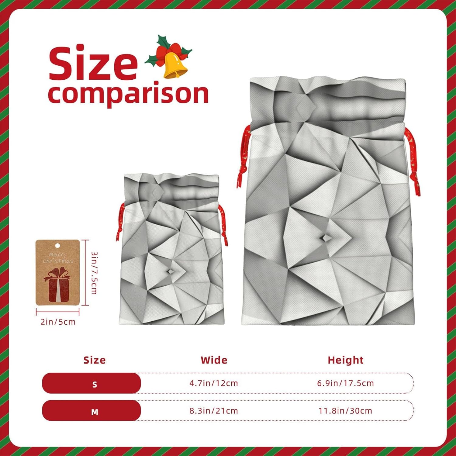 BORSE REGALO DI ALTO VALORE: la borsa regalo a strisce bianche e nere è dotata di sacchetti regalo con cordoncini colorati ed etichette. I sacchetti regalo sono aggiornati con un design con chiusura a coulisse, sacchetti regalo realizzati in poliestere, resistenti e riutilizzabili. Non si strappano come la carta, ottimi per incartare i regali. 10 secondi per incartare un regalo: il sacchetto a strisce bianche e nere per confezionare facilmente i regali, è facile da usare, basta inserire il regalo nei sacchetti, far scorrere l'etichetta regalo attraverso il nastro, tirare il nastro, annodare un fiocco e il gioco è fatto. Puoi evitare il fastidio associato a carta da imballaggio, forbici, nastro adesivo e nastro, risparmiare tempo e molto conveniente. Dimensioni del sacchetto regalo: i sacchetti regalo in 2 dimensioni possono soddisfare le preferenze di diverse persone e sono sufficienti per l'uso quotidiano e la festa di Natale. La S misura 12 x 17,5 cm e la M misura 12 x 30 cm. Sacchetti regalo in formati assortiti sfusi, perfetti per confezionare regali di diverse dimensioni. REGALO NEL REGALO: questi sacchetti regalo a righe bianche e nere possono essere riutilizzati molte volte. Un set di sacchetti regalo riutilizzabili sarà un'aggiunta meravigliosa a qualsiasi regalo e migliorerà l'esperienza complessiva del regalo. Inoltre, abbiamo rinforzato il fondo per una maggiore stabilità e una struttura robusta con carichi pesanti. Non facile da rompere per un uso durevole e duraturo. Sacchetti regalo multifunzionali: questi sacchetti a strisce bianche e nere possono essere utilizzati per conservare regali di Natale, giocattoli, bambole, cappelli di Natale, caramelle e regali durante una festa di Natale. Conservare i regali in questa borsa darà ai bambini più sorprese perché non sanno cosa c'è dentro.