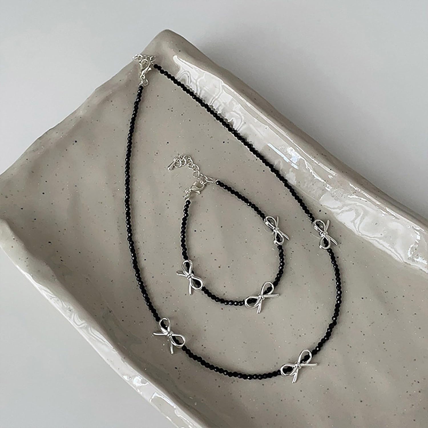 Robusta collana con bracciale bowknot in cristalli neri in lega, design elastico, vestibilità comoda per abiti da donna alla Caratteristiche L'elegante collana con bracciale bowknot con perline cristalli neri combina eleganti con un delicato fascino a nastro, caratterizzato da miglioramenti per design accattivanti. Realizzato con cordino elastico flessibile (circonferenza del polso da 14 a 20 cm) e robusti componenti in lega, questo set gioielli garantisce comfort per tutto giorno e resiste alla rottura durante l'uso attivo. I professionisti alla studenti o i viaggiatori cercano accessori che adattino perfettamente dall'abbigliamento da ufficio all'evento serale. Abbina questo elegante set gioielli neri con abiti casual per le giornate eleganti o abbinalo a design formali per elevare occasioni speciali come feste e cene. Progettato per la versatilità moderna, questo comodo set gioielli abbina facilmente a qualsiasi guardaroba mantenendo l'integrità strutturale durante sport e le attività all'aperto. Specifiche: Materiali: lega Dimensioni: collana 40 cm/15,75 pollici, braccialetto 20 cm 7 pollici La confezione include: Bracciale con collana bowknot con perline 1 pezzo Nota: 1.Si prega consentire errori 1-2 cm dovuti alla misurazione manuale, assicurandosi che non ti dispiaccia prima ordinare. 2.A causa delle differenze tra i diversi monitor, l'immagine potrebbe non riflettere colore reale.