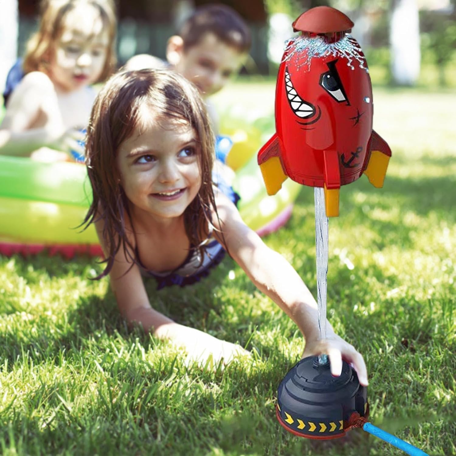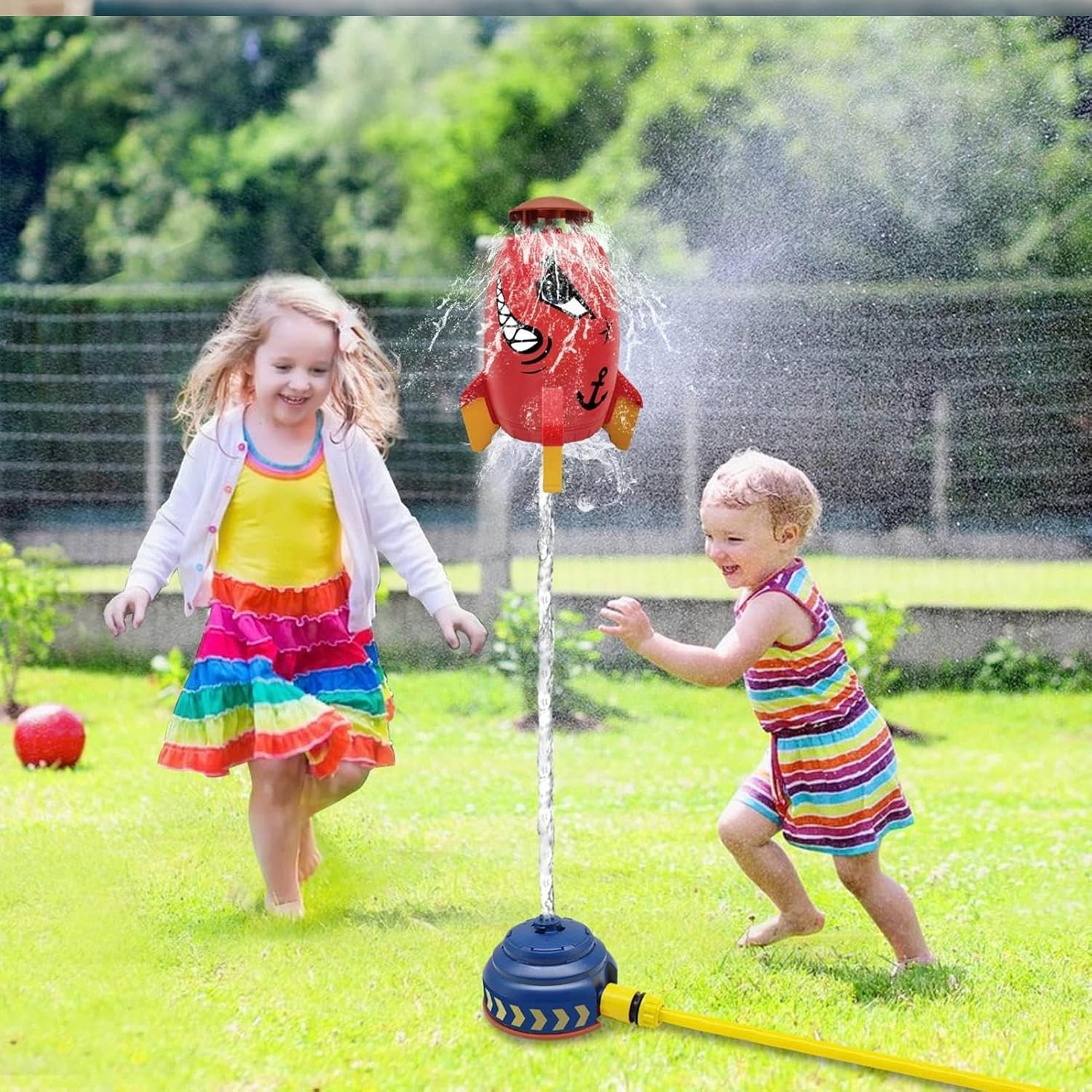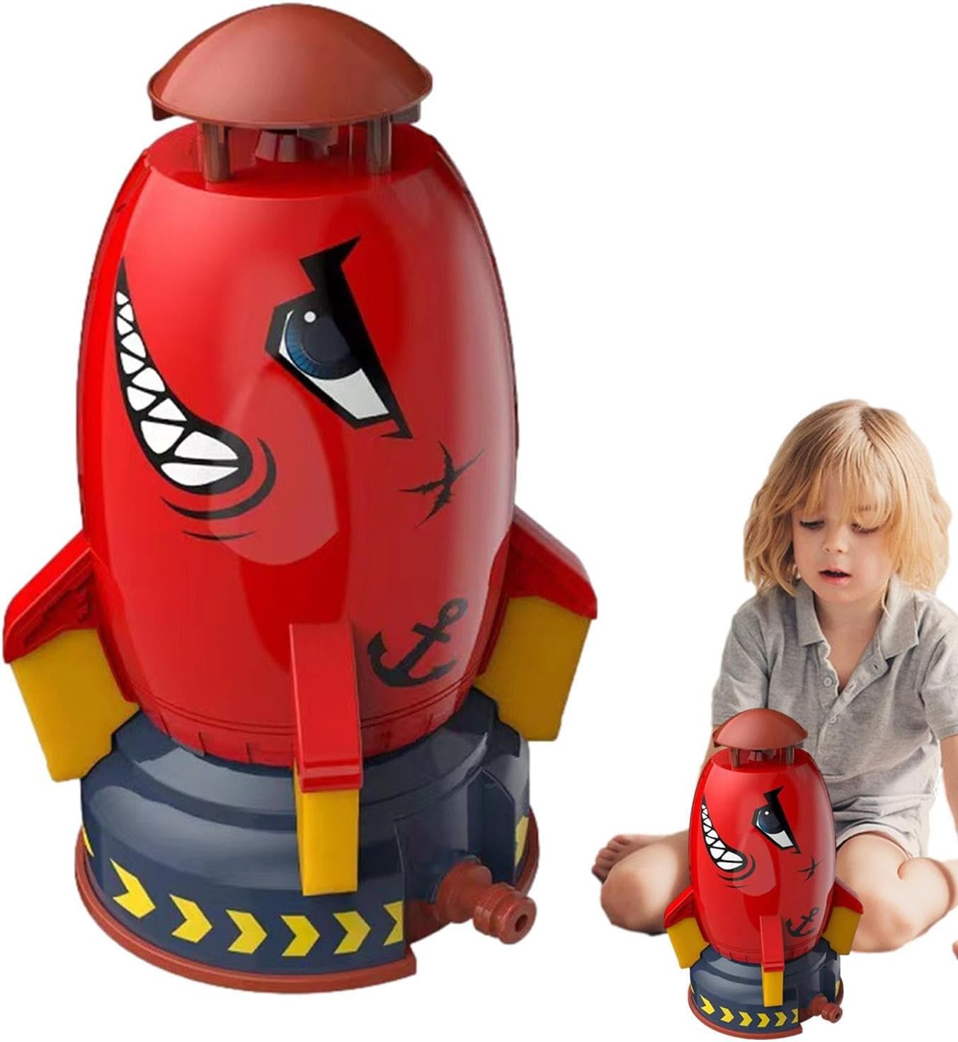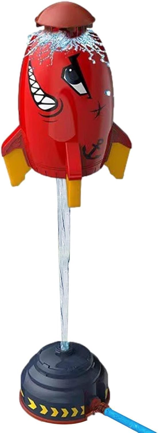 Incredibile design rotante: questo irrigatore a razzo è sorprendente e divertente. Ruota di 360 gradi e spruzza acqua ovunque. La forma a razzo spaziale dei cartoni animati darà ai vostri bambini la sensazione di volare. Facile da usare: questo divertente irrigatore per bambini è veloce e facile da installare. Basta attaccarlo al tubo da giardino e il gioco è fatto. La pressione dell'acqua determina l'altezza del getto in modo da poterlo regolare in base alle preferenze dei tuoi bambini. Questo irrigatore è un ottimo modo per mantenere i tuoi bambini freschi e felici. Costruzione robusta e sicura: questo irrigatore da giardino realizzato in materiale ABS di alta qualità in grado di resistere a cadute e urti. Ha una superficie liscia e inodore che è delicata sulla pelle dei vostri bambini. Puoi vedere che questo irrigatore dura molte estati piene di divertimento. Divertente strumento di apprendimento: questo irrigatore a fumetti sfiderà i tuoi bambini a mantenerlo in posizione verticale, regolando la pressione dell'acqua, promuovendo così le loro capacità di risoluzione dei problemi e la creatività in modo divertente. Varie occasioni: questo irrigatore estivo è resistente e leggero. Spruzza acqua in tutte le direzioni, creando un'atmosfera fresca ed emozionante per i bambini in estate. Puoi goderti il divertimento dell'acqua in giardini, prati, cortili o cortili.
