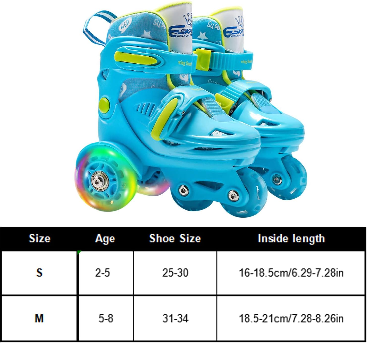 Modifica delle taglie: i pattini a rotelle regolabili in linea adottano un design di dimensioni regolabili, più adatti per bambini in crescita, adatti per bambini dai 2 agli 8 anni, controlla la nostra tabella delle taglie per vedere i pattini a rotelle adatti ai piedi del tuo bambino. Comodo da indossare: con un interno morbido e confortevole, traspirante e resistente, i pattini a rotelle per bambini sono comodi e sicuri, utilizzando cuscinetti silenziosi ABEC-7 in acciaio cromato per godere di una guida sicura, liscia e silenziosa con un telaio in alluminio rinforzato. Multiuso: i pattini a rotelle regolabili consentono ai bambini di godersi il divertimento dello sport e aiutarli a esercitare articolazioni e muscoli forti, i bambini che si esercitano regolarmente hanno un sonno migliore e un'immunità più forte e hanno molte funzioni. Sicuri da usare: include un sistema di fibbia di sicurezza a serraggio rapido e ruote ausiliarie a doppia fila per garantire la sicurezza dei bambini, i pattini a rotelle da esterno sono dotati di un freno a doppia scarpa in PVC, sicuri e durevoli con un elevato fattore di sicurezza in frenata per ottenere una migliore usura e una velocità moderata. Adatti come regalo: i pattini a rotelle per ragazze sono dotati di un cuscinetto spesso per proteggere le dita dei piedi la parte esterna della testa dello stivale, il regalo migliore e più premuroso per i bambini, adatto per compleanni, Natale, Ringraziamento e altri giorni speciali.