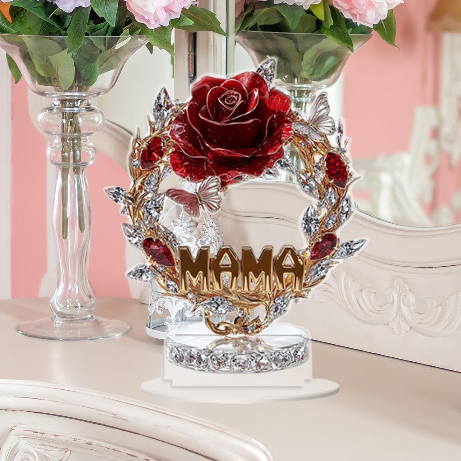 【Applicazioni ampie】: di decorazione del tavolo dei fiori di rose è un bel regalo per tua madre in festa della mamma, compleanni, giorno del Ringraziamento e festival. È necessario staccare il film di superficie prima dell'uso 【Decorazione per la casa】: segno dell'ornamento del desktop è adatto per indossare a casa, tavolo, ufficio, caffè, camera da letto, soggiorno, comodino, ecc. 【Decorazione da tavolo】: delicato regalo di fiore rosa 2D con una base staccabile, rendendolo una dimensione adeguata per la visualizzazione sulla scrivania e sullo scaffale 【Regalo per la festa della mamma】: segno acrilico piatto del delicato ed elegante con parole "mamma" (nota: non 3d), attraente e significativa, è una bella aggiunta alla decorazione per la festa della mamma 【Materiale premium】: la decorativa è realizzata in materiale acrilico premium, impermeabile, stampa chiara, resistente all'usura, non facile da deformarsi, robusta e garantisce molto tempo da usare