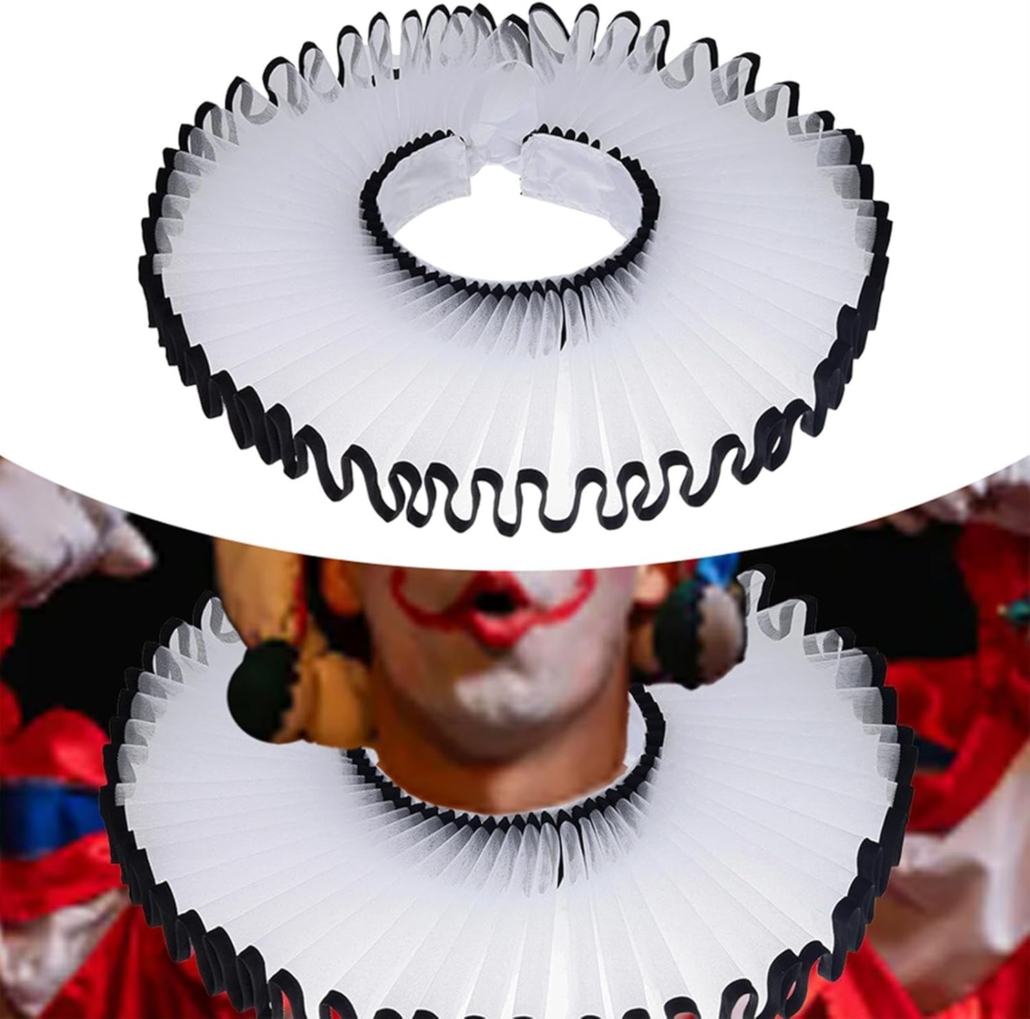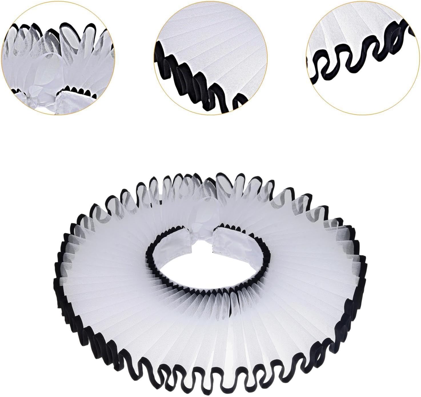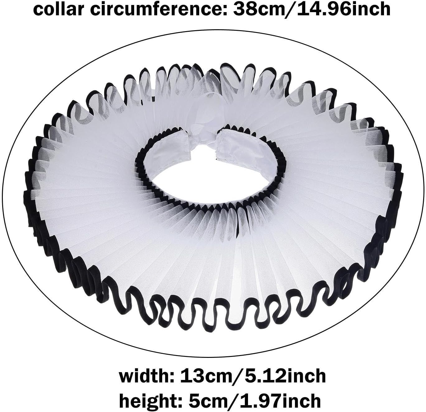 Accessorio versatile per costumi: questo colletto arricciato staccabile aggiunge un tocco di stile vintage e raffinato al tuo costume. Ideale per abiti , ruoli da clown da o spettacoli teatrali. Facile da usare: staccabile Ruffle Clown Neck consente un'applicazione e una rimozione rapide, rendendo comodo passare da un look o costume all'altro senza sforzo Dimensioni: con volant è progettato con una circonferenza del collo di 38 cm e un'altezza di 5 cm, questo collare elisabettiano offre una vestibilità aderente ma comoda per la maggior parte delle persone che lo indossano. Ampia applicazione: i collari da clown con collo a balza sono ideali per valorizzare costumi elisabettiani, abiti, abiti rococò, abiti , costumi teatrali, abiti gotici Materiale: realizzato in tessuto, questo collare per il collo garantisce comfort e longevità, rendendolo un'aggiunta affidabile al tuo guardaroba di costumi