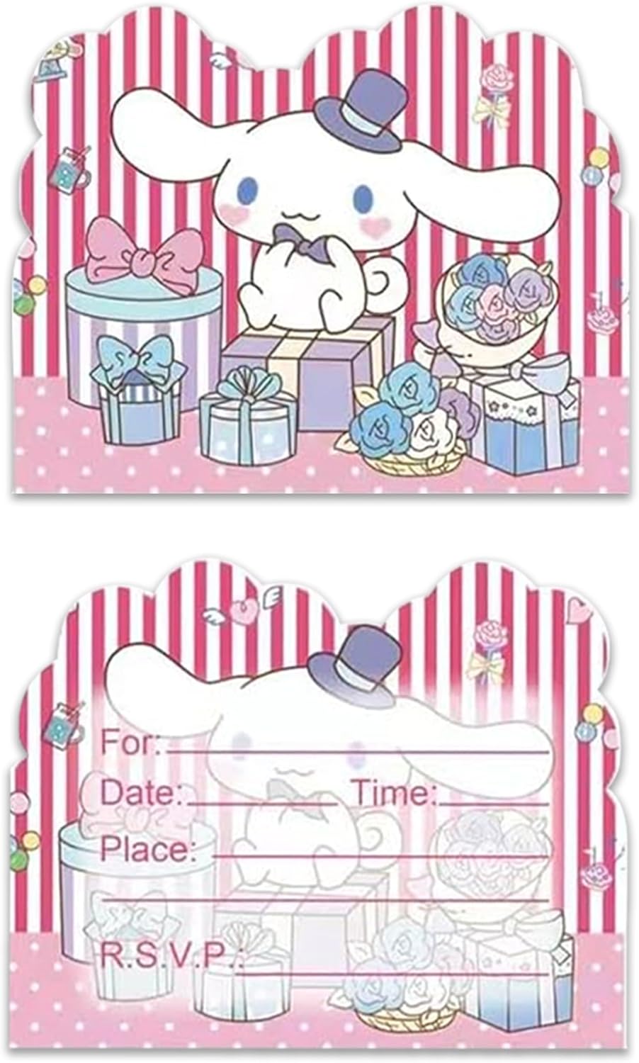 Roffatide Anime Cinnamoroll Invitation Cards, 10Packs, Multicolor, 6.5 x 4.8 pollici, Cartone per forniture per feste di compleanno Riempire gli inviti con buste per ragazze e ragazzi