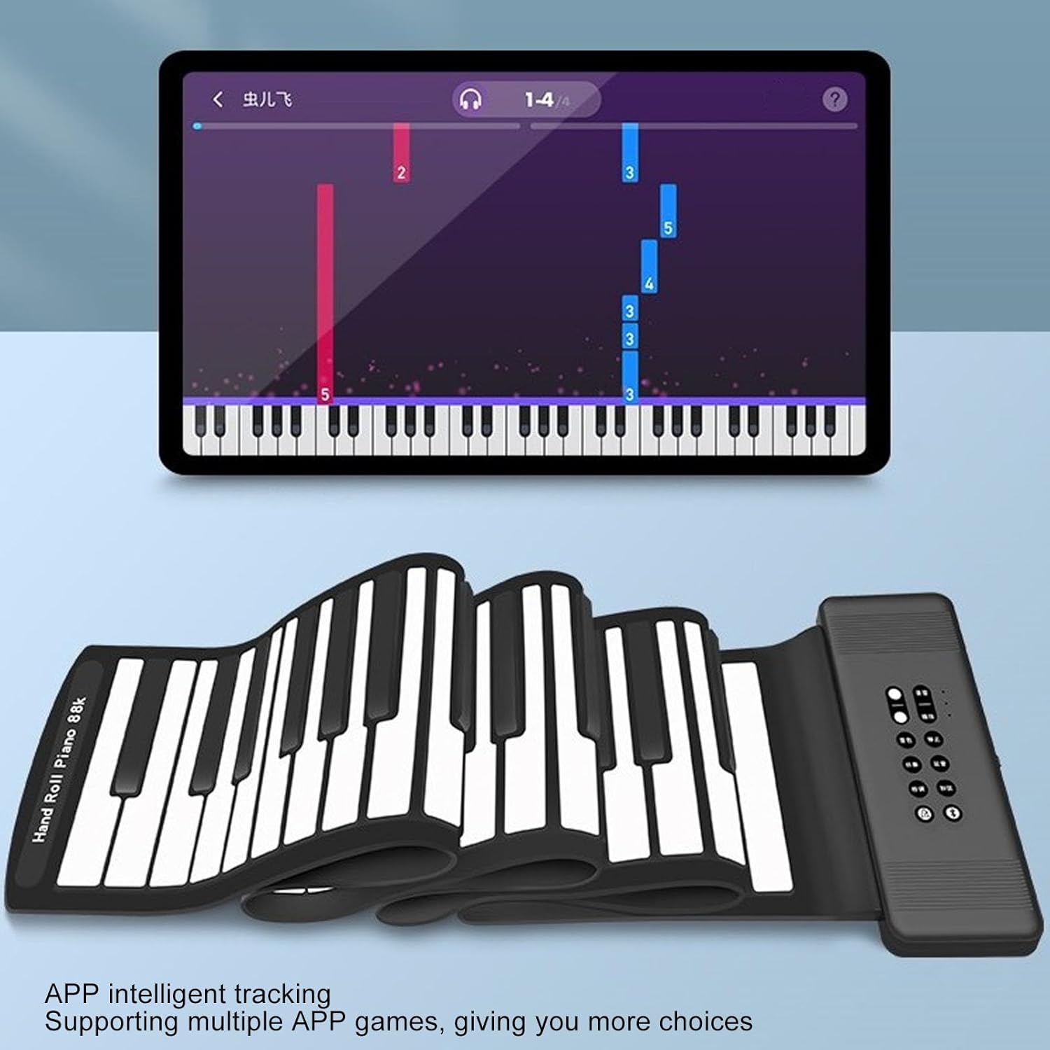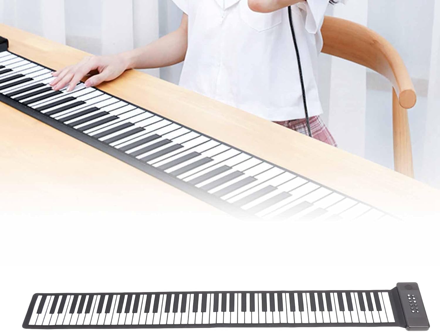 【Caratteristiche convenienti】 Il piano pieghevole include un audio HIFI, caratteristiche di registrazione, opzioni di riproduzione e vari effetti come Sustain e Vibrato, rendendolo versatile per gli scopi di insegnamento e pratica. 【Design portatile】 Il pianoforte per tastiera arrotolata è realizzato con silicone premium e materiali plastici, permettendoti di goderti la musica ovunque, in qualsiasi momento. La sua build leggera e flessibile lo fa per i musicisti in viaggio. 【Funzioni versatili】 dotato di altoparlanti integrati, 128 toni internazionali e una varietà di ritmi, il piano della tastiera portatile migliora la tua esperienza di gioco con l'output MIDI USB e la connettività per varie applicazioni musicali. 【Amichevole per principianti】 Con il suo design leggero, il piano arrotolato è per i principianti. Fornisce un'interfaccia di facile utilizzo che semplifica il processo di apprendimento, rendendo efficace per i musicisti degli aspiranti. 【Compatto e ricaricabile】 Questa tastiera per pianoforte arrotolata è progettata con una batteria ricaricabile integrata, fornendo tempo di gioco esteso e comodità per lezioni di classe o impostazioni di gruppo mantenendo una struttura compatta.