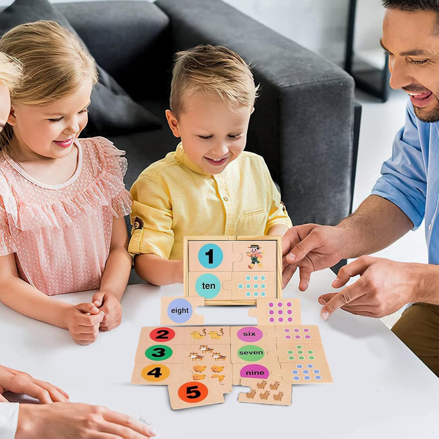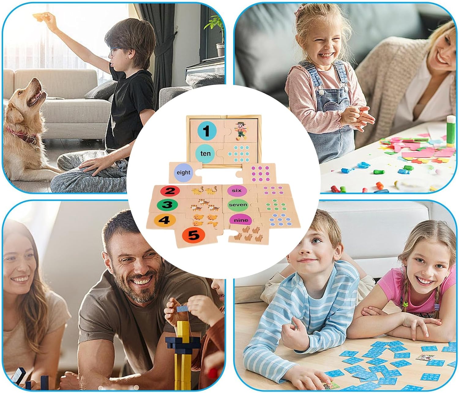 Incoraggiare la collaborazione dei genitori: questo giocattolo educativo ecocompatibile con design a puzzle sicuro per bambini stimola le capacità di classificazione e il riconoscimento dei numeri, favorendo momenti di condivisione e legami familiari durante il gioco interattivo genitore-figlio Strumento per migliorare la memoria: Stimola lo sviluppo cerebrale prescolare con attività che uniscono pensiero critico e miglioramento della memoria, offrendo un'esperienza di gioco educativo i bambini si impegnano in compiti di abbinamento per rafforzare il ragionamento logico e la funzione cognitiva durante sessioni di gioco formativo Puzzle educativo versatile: Incentiva il riconoscimento di colori e forme insieme all'associazione di numeri e parole, funzionando come un giocattolo educativo completo con design double-face per favorire lo sviluppo di concetti matematici precoci in modo intuitivo e interattivo Strumento di Apprendimento per Viaggi: Progettato per la portabilità, include una scatola in legno per tenere i puzzle organizzati, rafforzando l'allenamento alle abitudini attraverso il gioco pratico e coinvolgente Strumento apprendimento cognitivo: Il gioco a incastro educativo funziona come attività di logica, incoraggiando l'apprendimento cognitivo nei bambini, rafforzando la coordinazione occhio-mano e affinando il controllo dei piccoli muscoli in modo naturale