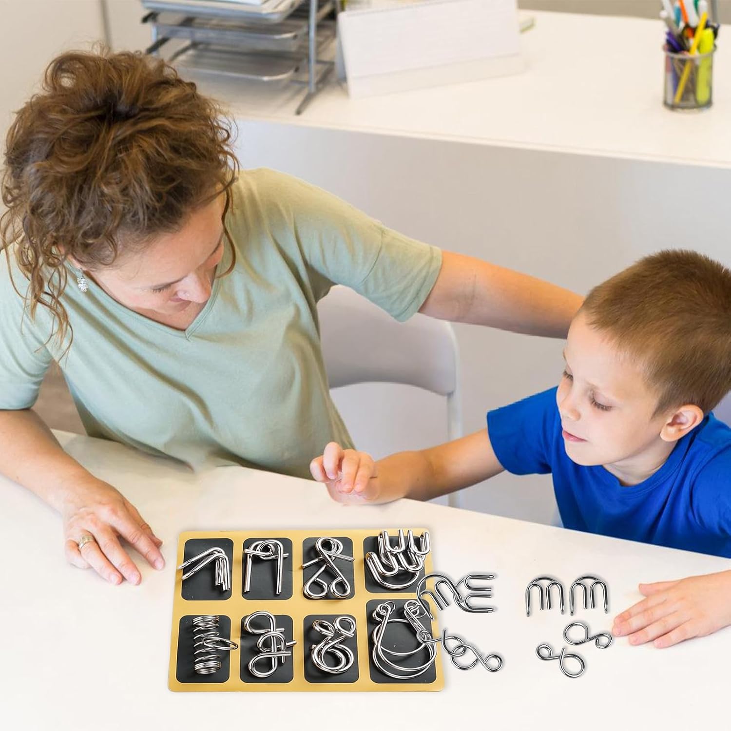 Miglioratore Abilità Cognitive: Sfidano l'utente a smontare e riassemblare strutture, potenziando l'immaginazione spaziale mentre favoriscono attenzione e resilienza attraverso il ragionamento logico, perfetti per contesti ricreativi o educativi Complessità Puzzle Progressiva: Il set con 24 puzzle in filo metallico ispira di esplorazione affrontando sfide sempre più intricate, creando opportunità per momenti di trionfo condivisi durante attività familiari o personale Adatto a Tutte le Età: I rompicapo in metallo offrono un esperienza rilassante con dimensioni compatte che si adattano comodamente a mani di tutte le misure fornendo un modo coinvolgente per distendersi adatti come gioco da scrivania per adulti che cercano chiarezza mentale Regalo Divertente: Questi rompicapi in metallo sono un regalo ideale per bambini, per compleanni, festività o occasioni speciali. Condividi calore e affetto mentre stimoli la creatività e il pensiero critico attraverso attività manuali coinvolgenti e sfide appassionanti. Design Comfortevole: Il puzzle in filo metallico, realizzato in acciaio al carbonio ad alta densità, garantisce lunga durata e resistenza a flessioni frequenti. I bordi levigati e privi di imperfezioni offrono sicurezza e comfort per utenti di tutte le età, adatto a serate in famiglia o per alleviare lo stress.