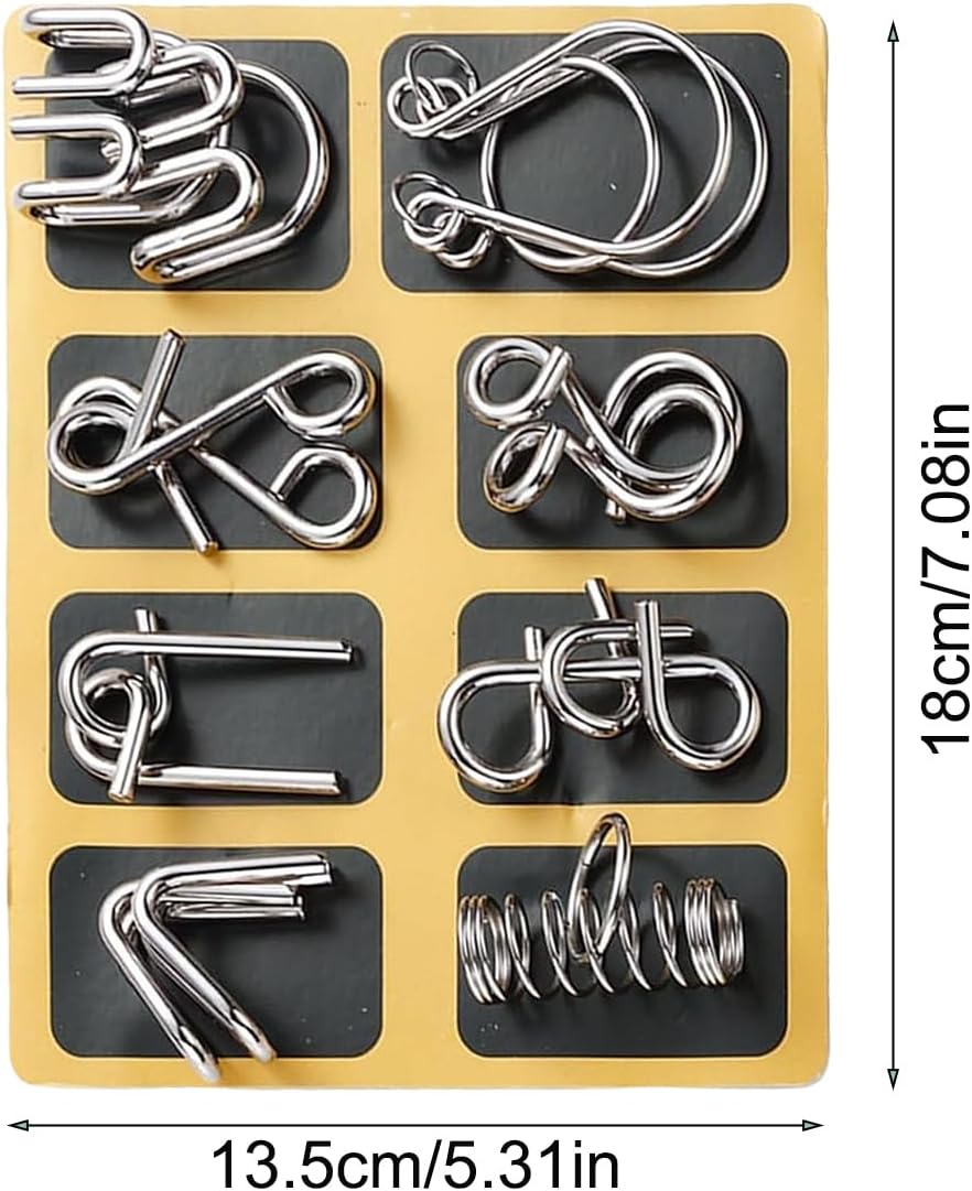 Costruttore Attenzione e Resilienza: Promuovono lo sviluppo intellettuale sottile attraverso compiti di smontaggio e rimontaggio, migliorando la consapevolezza spaziale e coltivando la pazienza durante sessioni di problem-solving a casa o al lavoro Esplorazione tramite Puzzle: Con 24 design di puzzle in filo metallico, il set promuove l'intrattenimento familiare offrendo sfide da semplici a complesse, stimolando curiosità e premiando la perseveranza, ideale per serate di gioco o pomeriggi insieme Strumento di Familiare: I puzzle metallici fungono da ponte per l interazione genitore figlio unendo dimensioni compatte e vantaggi antistress per creare esperienze condivise sia a casa in viaggio che come regalo premuroso per persone care Regalo Significativo: Questi rompicapi in metallo educano e divertono, rendendoli regali preziosi per bambini. Perfetti per compleanni, feste o Natale, dimostrano cura e supportano lo sviluppo mentale attraverso il gioco. Design Comfortevole: Il puzzle in filo metallico, realizzato in acciaio al carbonio ad alta densità, garantisce lunga durata e resistenza a flessioni frequenti. I bordi levigati e privi di imperfezioni offrono sicurezza e comfort per utenti di tutte le età, adatto a serate in famiglia o per alleviare lo stress.