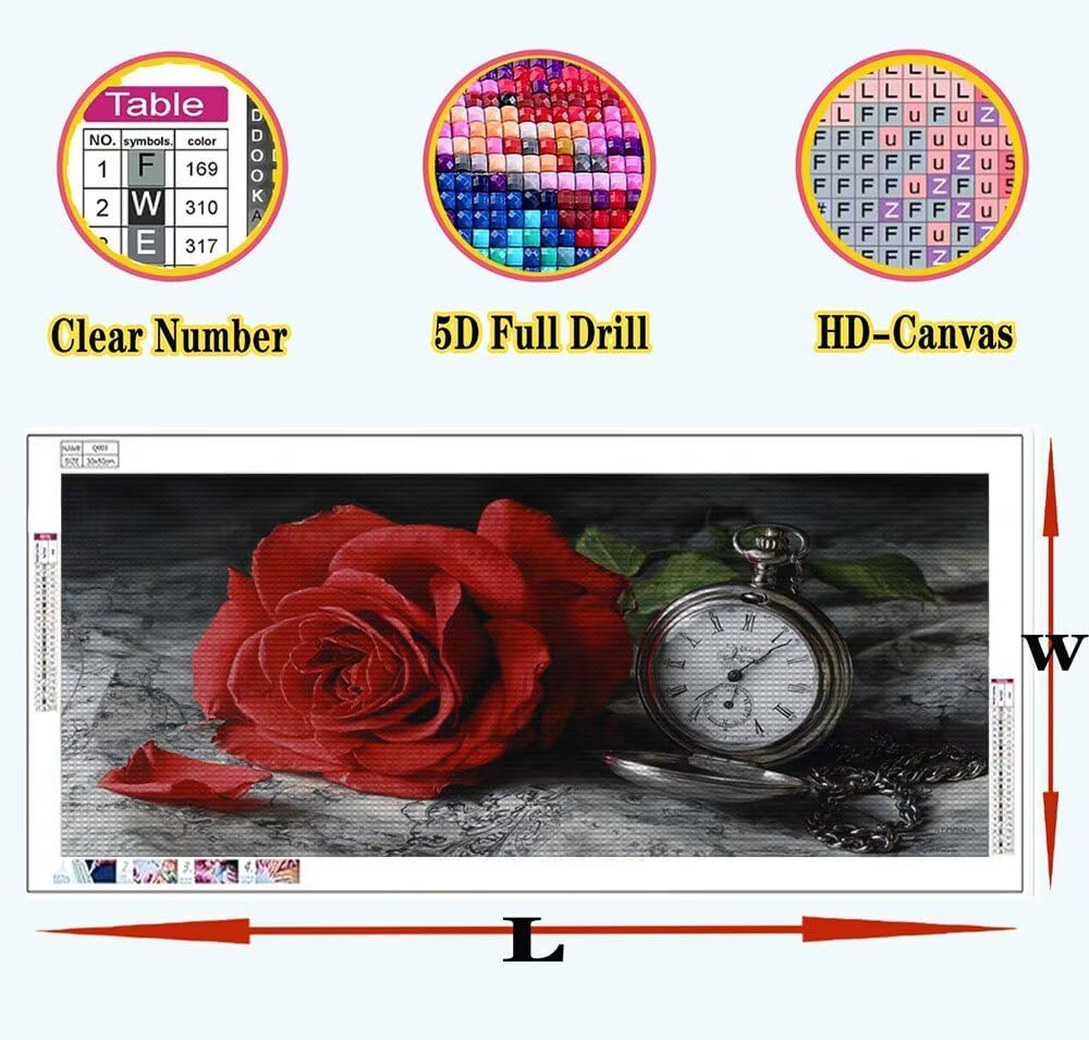 Rosa Diamond Painting Kit Completo, Orologio Diamond Painting Bambina 90x180cm DIY Full Drill Crystal Art , 5D Bambini Per Pittura Diamante Adulti Principianti Per Pittura Diamante Wall Decor A-U78