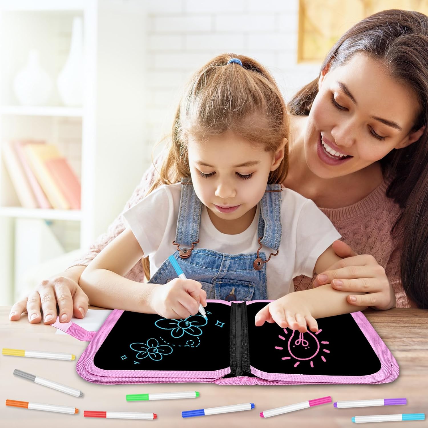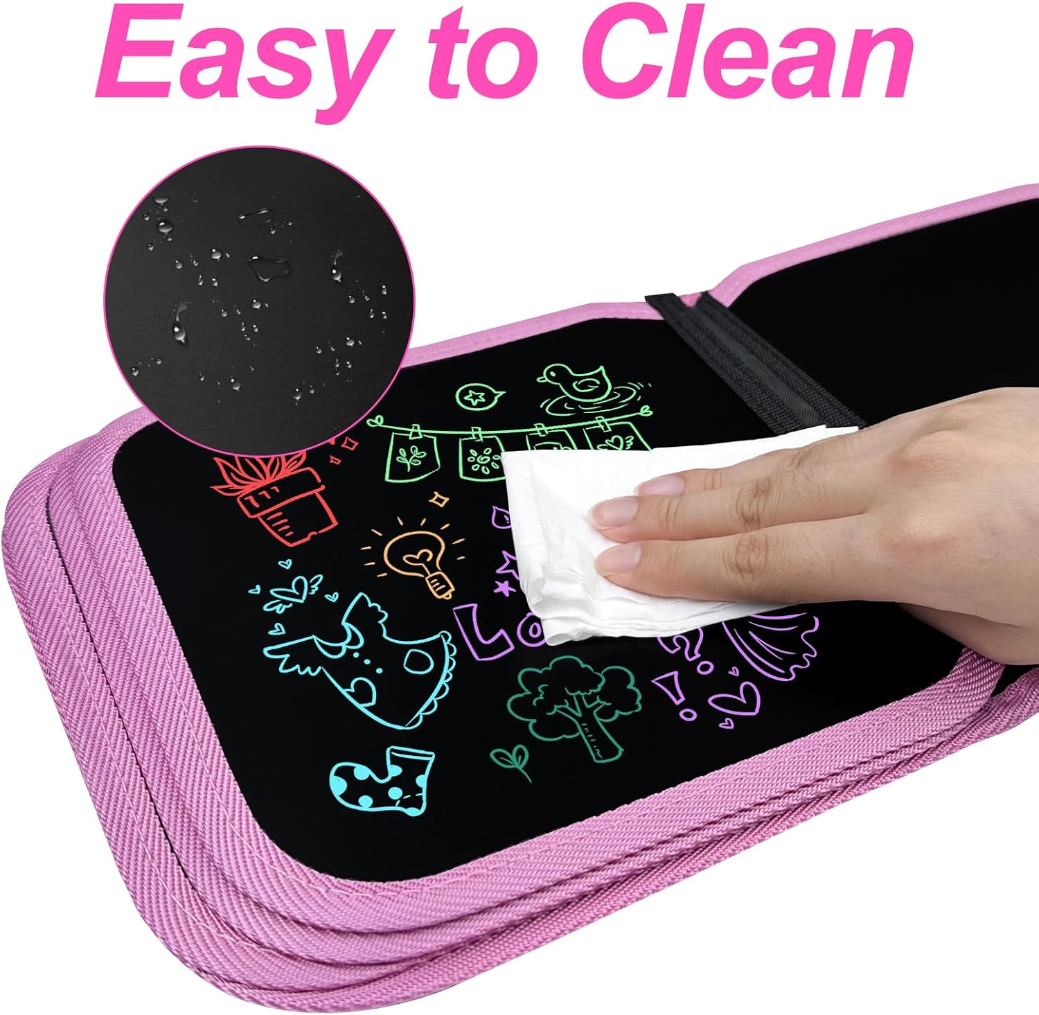 【Sicuro e di alta qualità】: lo strato esterno del tavolo da disegno bambini è realizzato in tessuto oxford impermeabile, spesso e resistente. Il tavolo da disegno nero interno è realizzato in materiale PP di alta qualità, che non è facile da graffiare. Questo è un eccellente libro da disegno per bambini. 【Riutilizzabile】: i Portatile da Libro Cancellabile possono essere graffiti con penne colorate e puoi usare salviette umidificate per cancellare la calligrafia e i libri da disegno possono essere riutilizzati come nuovi. È ricco di colori e può coltivare bene la creatività dei bambini. 【Design confortevole】: l'aspetto del Doodle Tavolas da Disegno Giocattolo ha una consistenza morbida e il libro illustrato ha un design con angoli arrotondati, che dà una sensazione sicura e confortevole. Nell'ultima pagina dell'libro da disegno è presente una piccola custodia per riporre i pennelli ed evitare che vadano persi. 【Set di libri di graffiti】: un Giocattoli da Pittura ha 14 pagine, lunghezza 21,5 cm, larghezza 20,5 cm. Inoltre, la custodia dell'libro da disegno è dotata di 12 penne cancellabili di diversi colori, con una lunghezza di 10,5 cm. Il libro da disegno è di piccole dimensioni e facile da trasportare. 【Regalo perfetto】: il Fogli Lavagna per bambini può essere regalato a un bambino o una ragazza. È adatto a bambini di età superiore a 2 anni. Gli libro da disegno possono apparire su aerei, automobili, ristoranti, campeggi e altri luoghi per accompagnare i bambini in ogni viaggio.