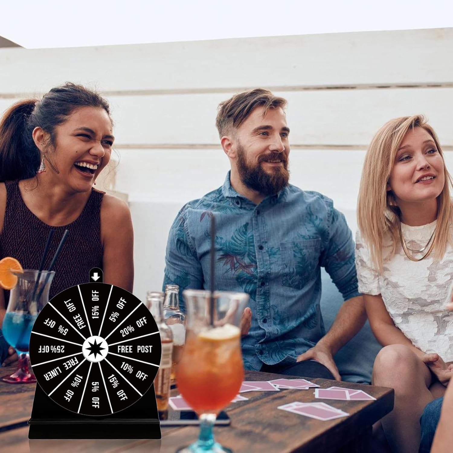Realizzato in acrilico, questo giradischi è visivamente accattivante con pennarelli di base, garantendo intrattenimento Ideale per adolescenti e adulti che amano incontri sociali, questo gioco è per coloro che cercano di aggiungere un tocco unico al loro evento Con il suo design portatile, la ruota rotante può essere facilmente trasportata in luoghi diversi, rendendolo un'aggiunta essenziale al kit di strumenti di qualsiasi pianificatore di feste Adatto per una varietà di occasioni come riunioni di famiglia, feste di compleanno, amici e eventi di team building aziendale, questa ruota migliora qualsiasi ambiente sociale Elevando le tue atmosfere di festa con il gioco di bere a ruota rotante, progettato per aumentare l'interazione e l'eccitazione tra i partecipanti