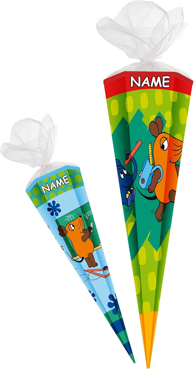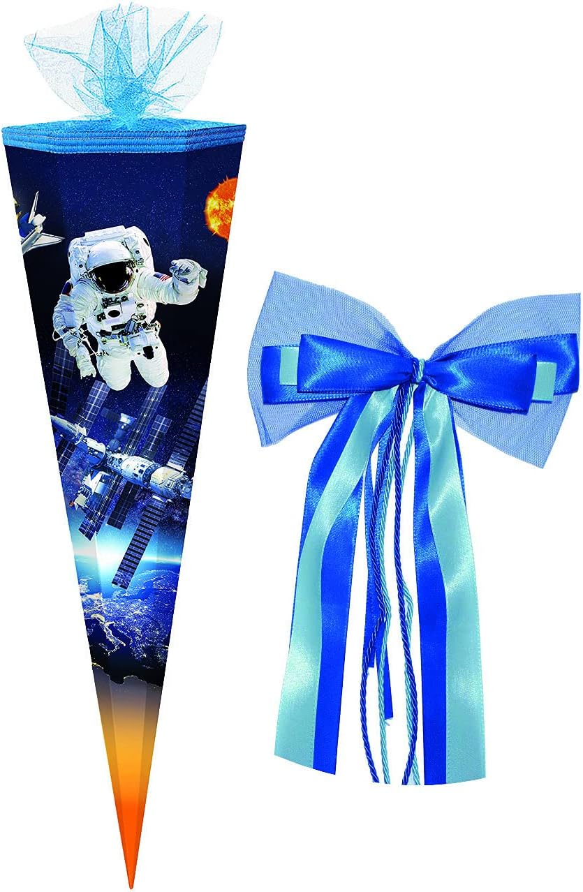 Cono di alta qualità con motivo Tyrannosaurus per ragazzi Il cono regalo per la scuola misura 35 cm e rotondo e chiuso con tulle nero Per tutti i coraggiosi principianti della scuola, questo cono è la scelta giusta Il potente motivo raffigura un pericoloso tirannosauro nel mezzo della foresta primordiale di un paesaggio montano Prodotto di qualità del marchio ROTH in Sassonia