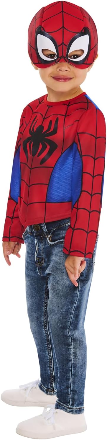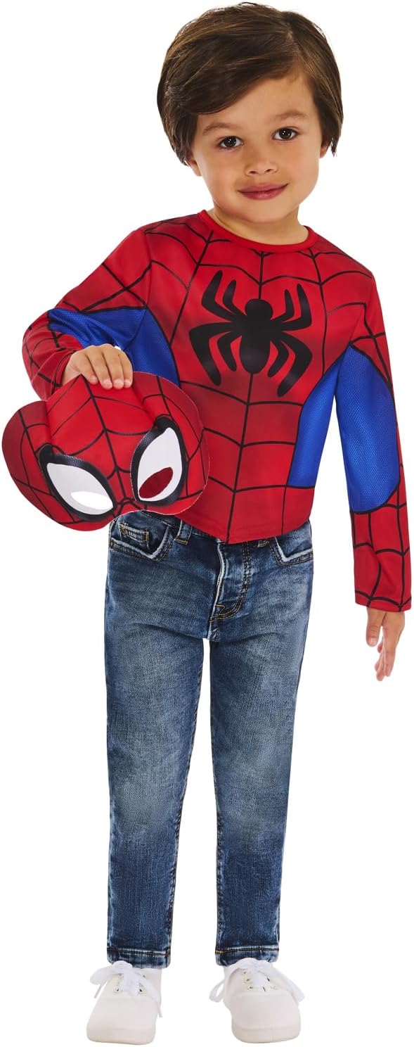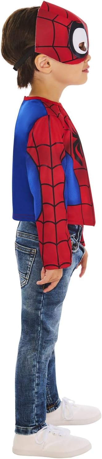 Descrizione Trasforma il tuo bambino in un supereroe Spider-Man con questo top e la sua maschera abbinata. Progettato con materiali di qualità, questo set per travestimenti è fedele al design iconico dell'uomo ragno Spider-Man con i suoi colori rosso e blu e la stampa ragnatela. È progettato per adattarsi alla maggior parte dei bambini grazie alla sua taglia unica, offrendo una vestibilità comoda per un'esperienza di gioco ottimale. La maschera è dotata di una fascia elastica sul retro, che permette al bambino di metterla e toglierla facilmente. Che si tratti di feste in costume di Halloween, compleanni a tema supereroi o sfilate di carnevale, questo set di travestimenti top e maschera è perfetto per giocare i supereroi in ogni circostanza. Lascia che tuo figlio incarni il suo supereroe preferito e vivi avventure emozionanti. Regalagli questo set di travestimenti ufficiale Marvel Spider-Man e fai brillare la sua immaginazione. Avviso di sicurezza Non adatto a bambini di età inferiore ai 3 anni