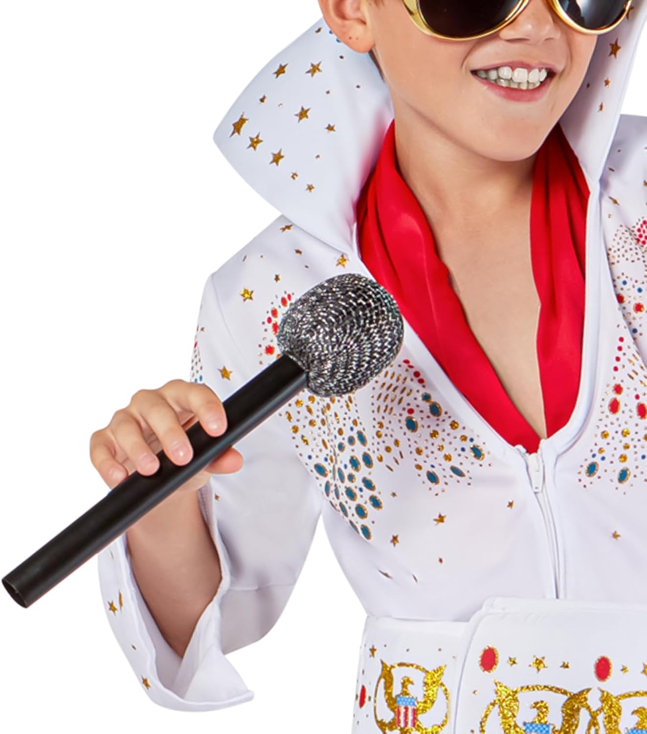 Elvis Presley accessorio per costume microfono Dimensioni: 28 x 5 x 5 cm Manico in plastica cava; la parte superiore del microfono è rivestita in tessuto a rete nero e argento metallizzato Cerca l'intera collezione di accessori per costumi di Rubies per completare il tuo outfit Elvis Dal 1950, Rubies Costume Company, a conduzione familiare, con sede a New York, porta divertimento alle famiglie di tutto il mondo
