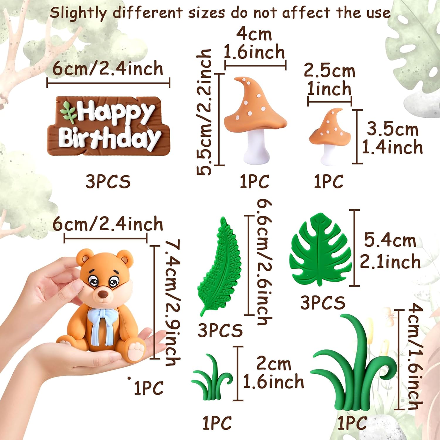 Il nostro set di figurine di animali della foresta ha tutto ciò di cui hai bisogno per rendere questo giorno indimenticabile Questo set di decorazioni per compleanno di animali della foresta può essere utilizzato a qualsiasi festa di compleanno Riceverai: 1 orso, 2 funghi, 2 erbe, 6 foglie, 3 toppers per torta di buon compleanno Decora la tua torta di compleanno con il nostro set di toppers per torta con orso della foresta Se hai problemi, faccelo sapere