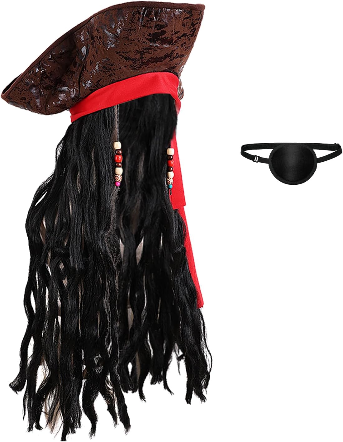 Dettagli del prodotto: La confezione include: 1 * cappello con parrucca, 1 * benda sull'occhio Caratteristiche: 1. La confezione include: 1 * cappello con parrucca, 1 * benda sull'occhio. Set di costumi perfetto per darti un look da pirata più realistico. 2. Design perfetto: i cappelli da pirata sono progettati a forma di tricorno che ha un aspetto vintage in ecopelle invecchiata, lunghe parrucche ricci e perline colorate sono attaccate al cappello, una benda nera sull'occhio con una stampa di teschio bianco, il tutto per creare un classico stile pirata. 3. Materiali di alta qualità: il cappello e la benda sull'occhio sono realizzati con materiali di alta qualità, leggeri e resistenti, comodi da indossare. 4. Occasioni applicabili: questo costume da pirata è adatto a varie occasioni, come feste a tema, celebrazioni di Halloween, spettacoli teatrali, giochi di ruolo, feste in cosplay, ecc. 5. Regalo ideale: questo set di oggetti di scena pirata è una scelta regalo unica e interessante per la tua famiglia e i tuoi amici ad Halloween, compleanno, festa, ecc. Adatto per gli appassionati di cultura dei pirati, fan dei giochi di ruolo o amici che vogliono mostrare la propria personalità.