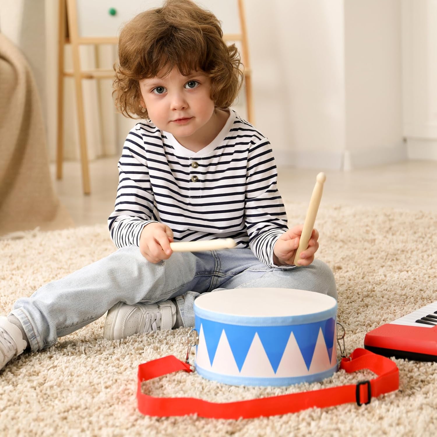 Giocattolo musicale per i più piccoli - toccando la superficie del tamburo con la mano del bastoncino si possono produrre diversi suoni per far percepire al bambino la fonte del suono, -tamburo rullante a percussione - facile e divertente. Questi strumenti a percussione possono promuovere l'hobby musicale e le abilità pratiche dei bambini. Strumento a percussione giocattolo a tamburo per - un meraviglioso giocattolo educativo per allenare la coordinazione occhio-mano di tuo figlio, molto divertente e interessante, tamburo per bambini I rullanti possono allenare l'udito dei bambini e rafforzare la loro musicalità e alcune altre abilità, batteria Strumenti musicali batteria - ottimo per sviluppare i talenti musicali di tuo figlio, divertente e pratico, batteria