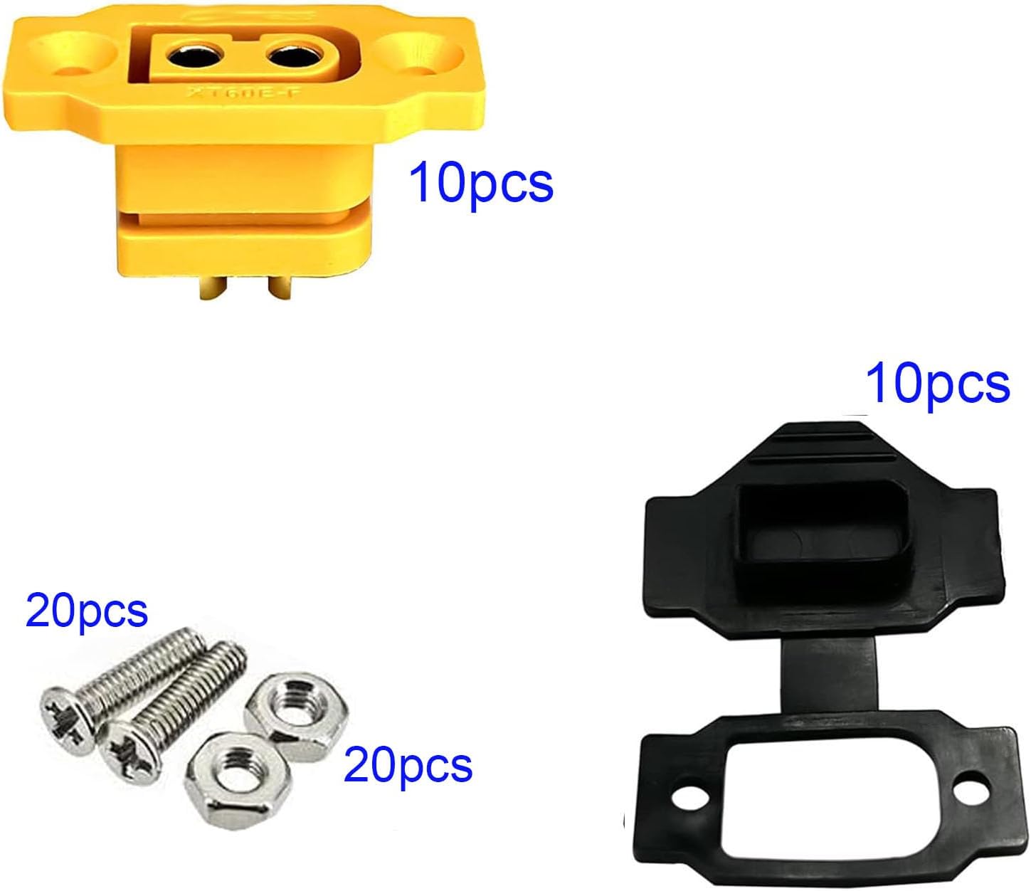 ✔ Confezione: 10 prese XT60E-F + 10 tappi antipolvere + 20 viti ✔Compatibile con tutti i connettori della serie XT60 ✔Materiale: realizzato in plastica e metallo di alta qualità, leggero e resistente ✔Il parapolvere XT60E-F è realizzato in PVC. Il bordo esterno del coperchio incernierato è progettato per avere una scanalatura al centro della connessione per ridurre successivamente la forza di reazione del coperchio antipolvere ✔Connettore XT60E-F per drone da corsa FPV per aerei RC UAV