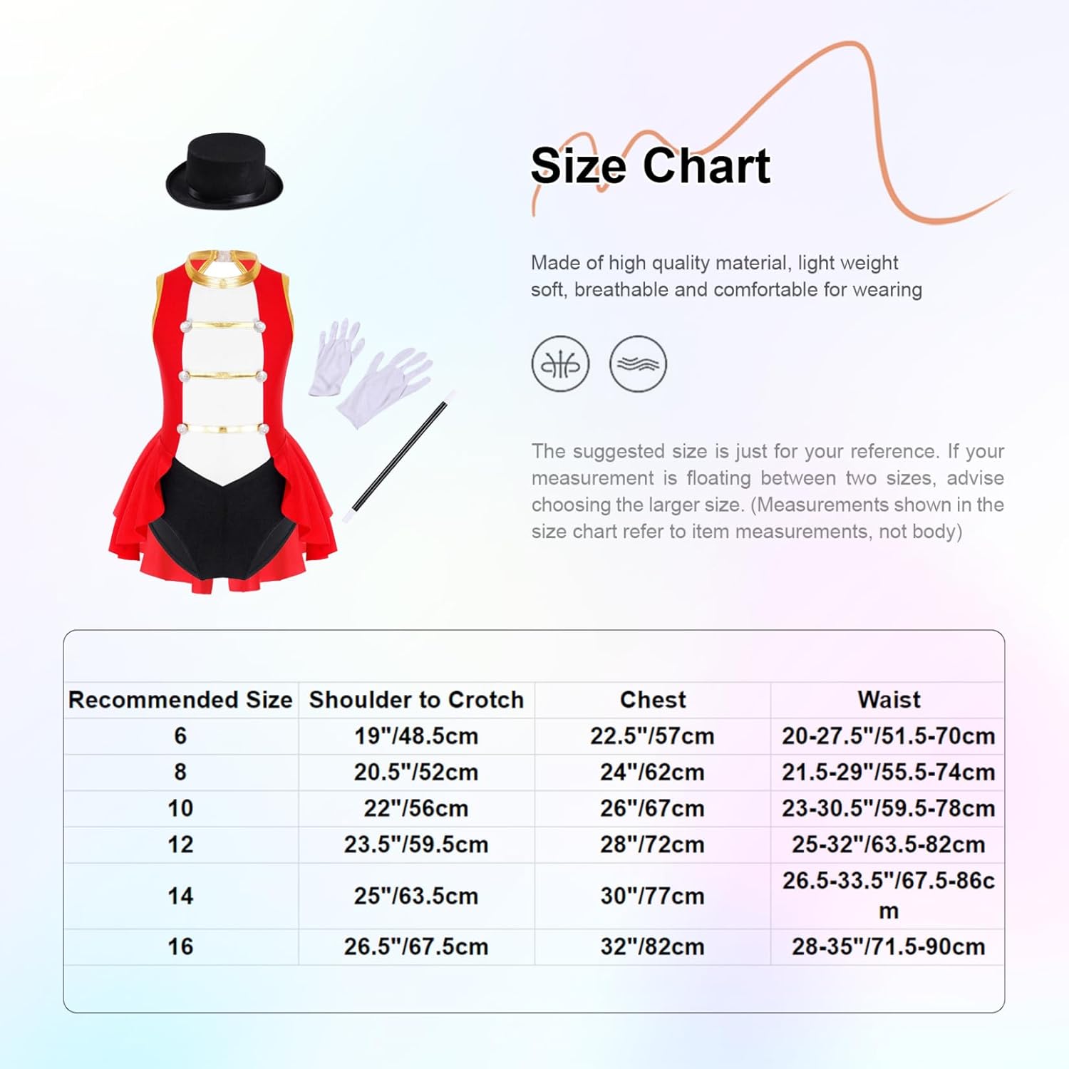 Il set include: body 1 pc, cappello 1 pc, bacchetta magica 1 pc, 1 paio di guanti. Condizione: nuovo con etichetta Materiale: 90% poliestere, 10% elastan Etichetta---|---Misura consigliata: --|---Spalla al Cavallo--|------Busto-----|------Vita: ----6-------|---------5-6 anni--------|--------19"/48,5 cm-------|---22,5"/57 cm---|----20-27,5"/51,5-70 cm. ----8-------|---------7-8 anni--------|--------20.5"/52 cm-------|----62 cm----|----21.5-29"/55.5-74 cm. ----10------|--------9-10 anni--------|---------22"/56 cm--------|----67 cm----|----23-30.5"/59,5-78 cm. ----12------|--------11-12 anni-------|-------23.5"/59.5 cm------|----28"/72 cm----|-----25-32"/63.5-82 cm-- ----14------|--------13-14 anni-------|--------25"/63,5 cm-------|----30"/77 cm----|---26,5-33,5"/67,5-86 cm. ----16------|--------15-16 anni-------|-------26.5"/67.5cm------|----32"/82 cm----|-----28-35"/71.5-90 cm--