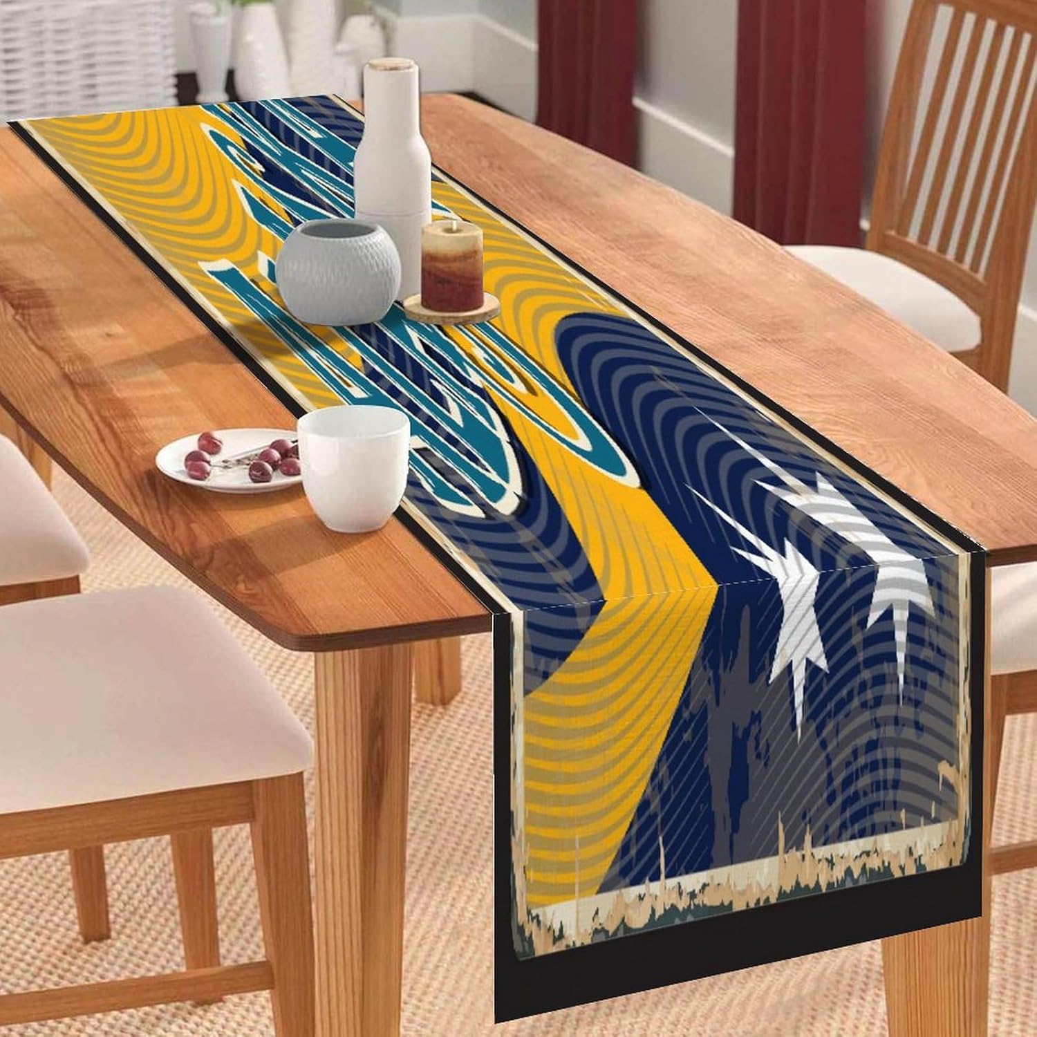 Dimensioni: 90 x 33 cm. Materiale: realizzato in morbido lino di cotone, comodo e durevole, resistente all'usura. Protegge la superficie del tavolo per la decorazione quotidiana della tavola, proteggendo la superficie del tavolo da pentole calde, graffi, danni causati dal calore. [Grande decorazione]: i runner da tavola sono un modo veloce, facile ed economico per aggiornare il tavolo della sala da pranzo, la camera da letto, il comò. Sarà il tuo compagno perfetto per colazione, pranzo e cena. Questa tovaglia dal design elegante aumenterà il fascino del tavolo da pranzo. [Uso multiuso]: alla ricerca di un runner da tavola per più occasioni? Non cercare più! Questo runner da tavola può andare dal ringraziamento alla festa di Natale ed è ottimo anche per una serata estiva informale. Sarà anche un regalo perfetto per i tuoi cari per l'inaugurazione della casa, il Ringraziamento o Natale. Ampia applicazione: caratterizzato da un motivo elegante con un bel bordo con nappe, sembra bello e vintage. Adatto per l'uso quotidiano, balli, matrimoni, feste o qualsiasi vacanza speciale. Ideale per uso interno ed esterno, come cucina, giardino, tè pomeridiano, caffè, cene, balcone, potlucks.