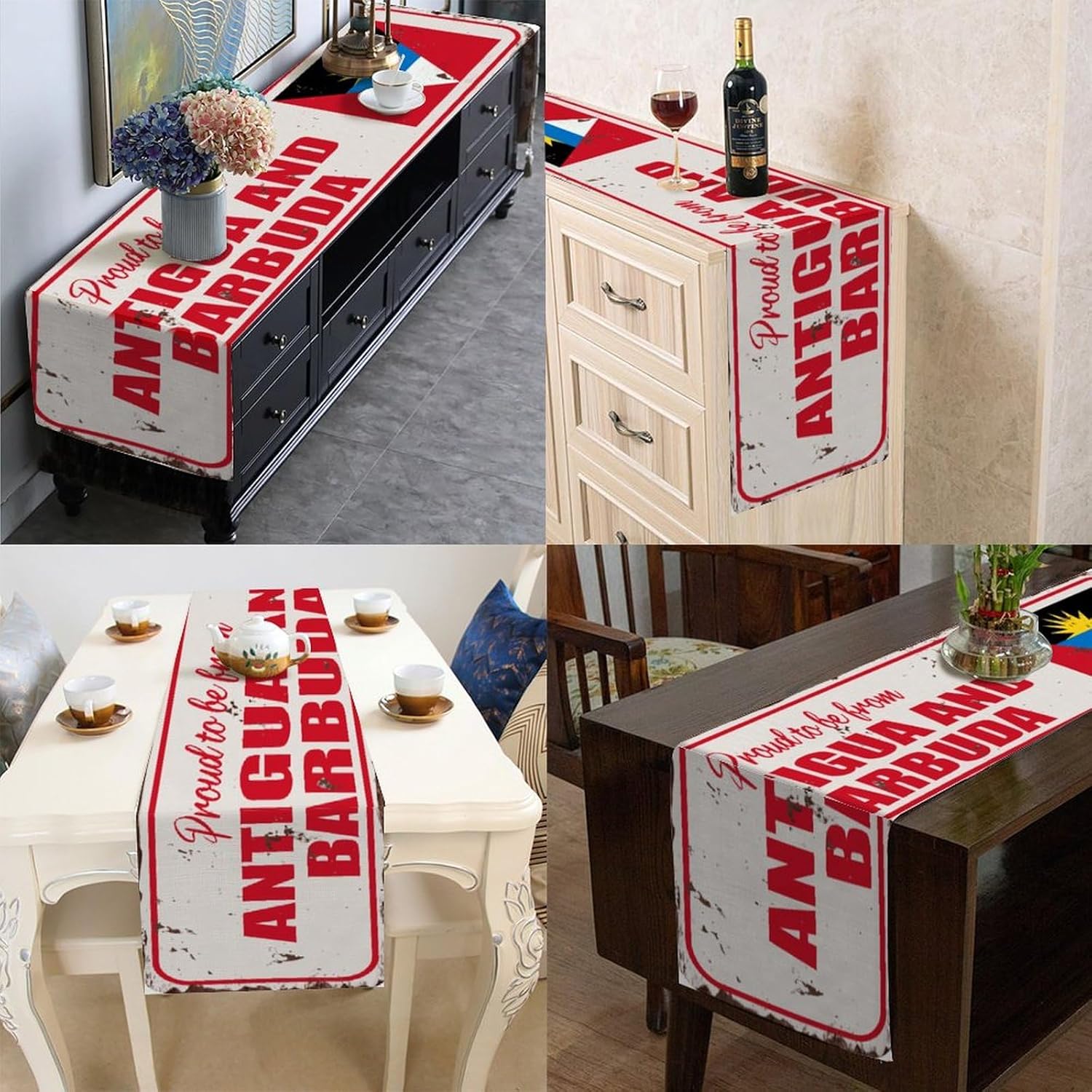Runner da tavola con bandiera di Antigua e Barbuda, con bandiera di Antigua e Barbuda, decorazione per tavolo da pranzo, cucina, decorazione per la casa, feste, 33 x 305 cm