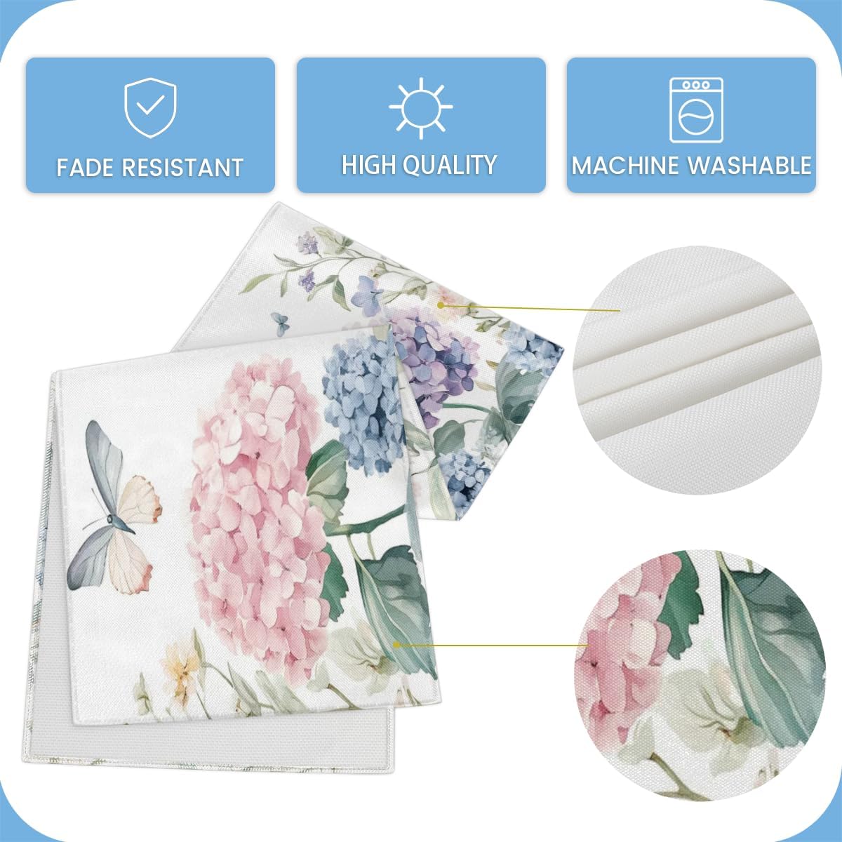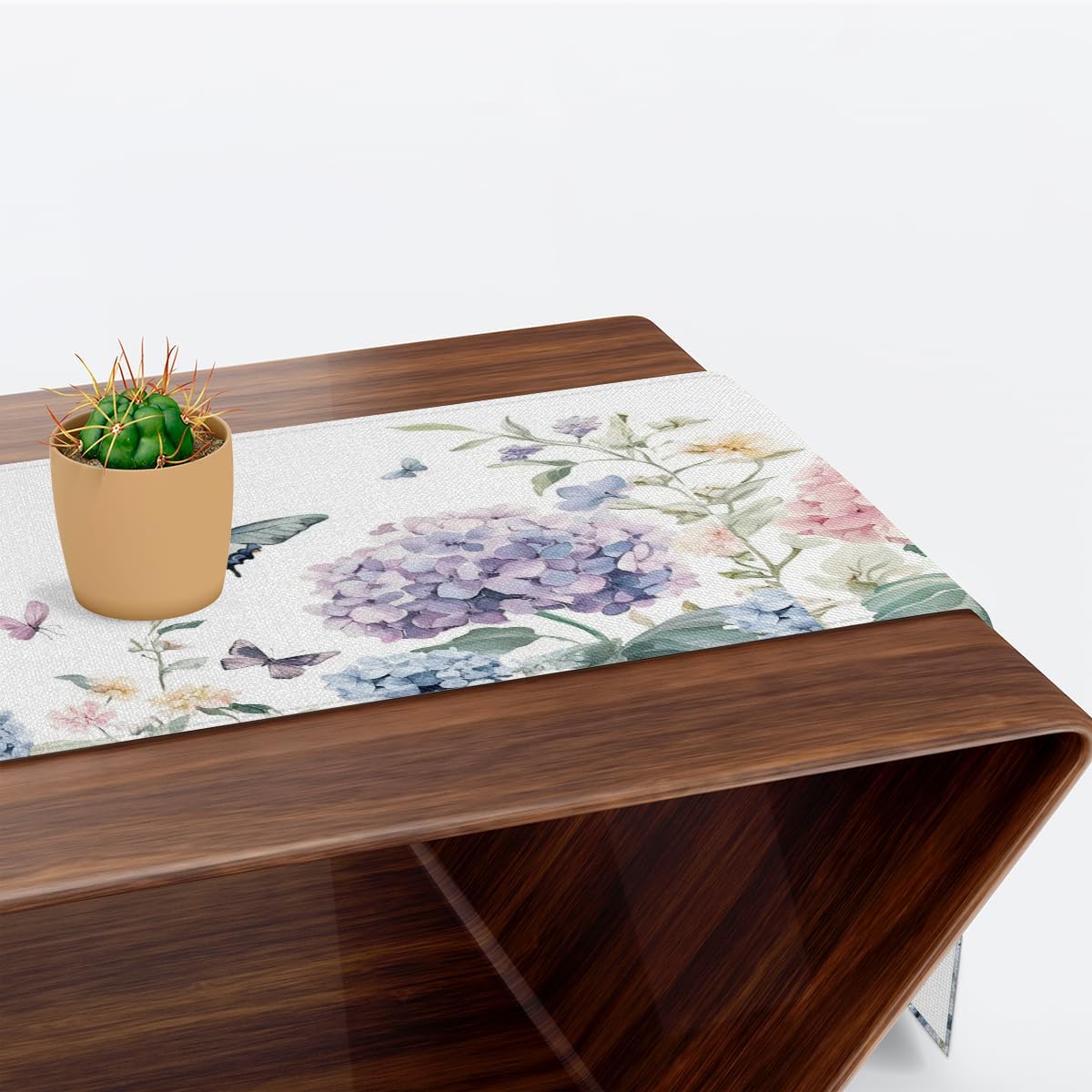 Runner da tavola con ortensia, 33 x 182 cm, decorazione per tavolo da pranzo per la casa e le feste
