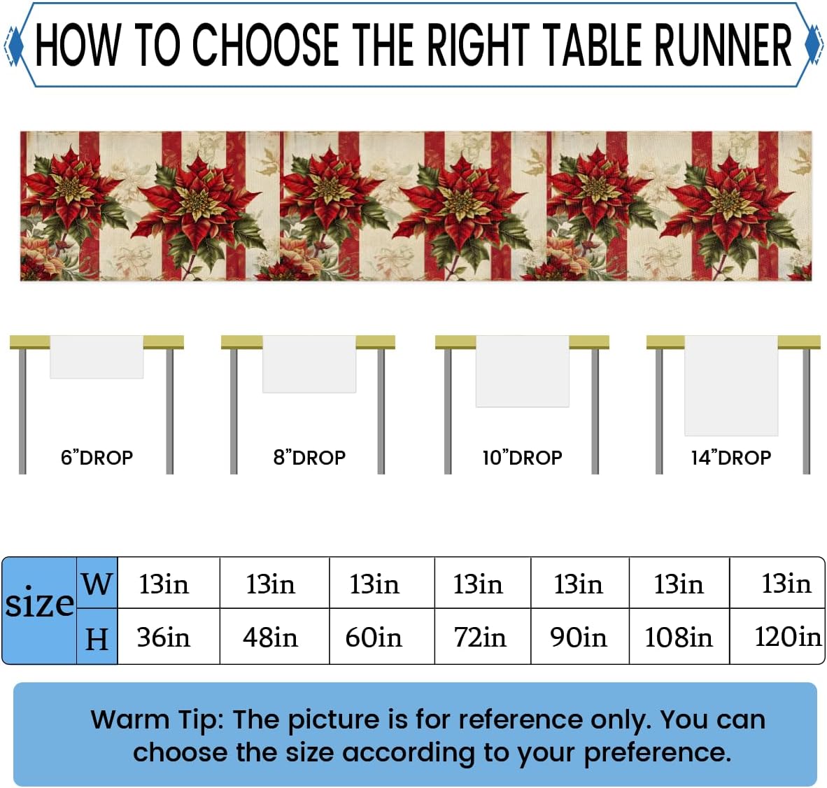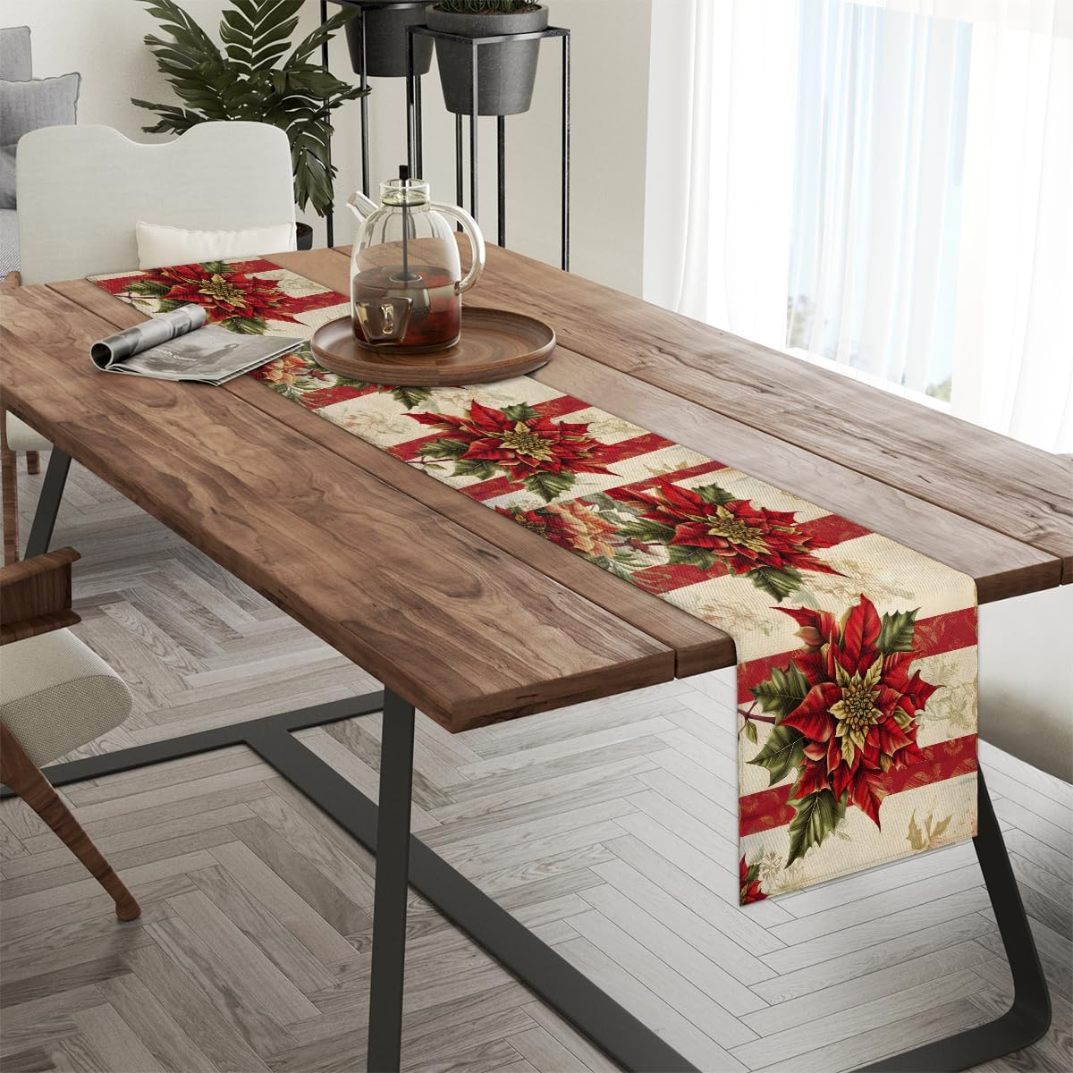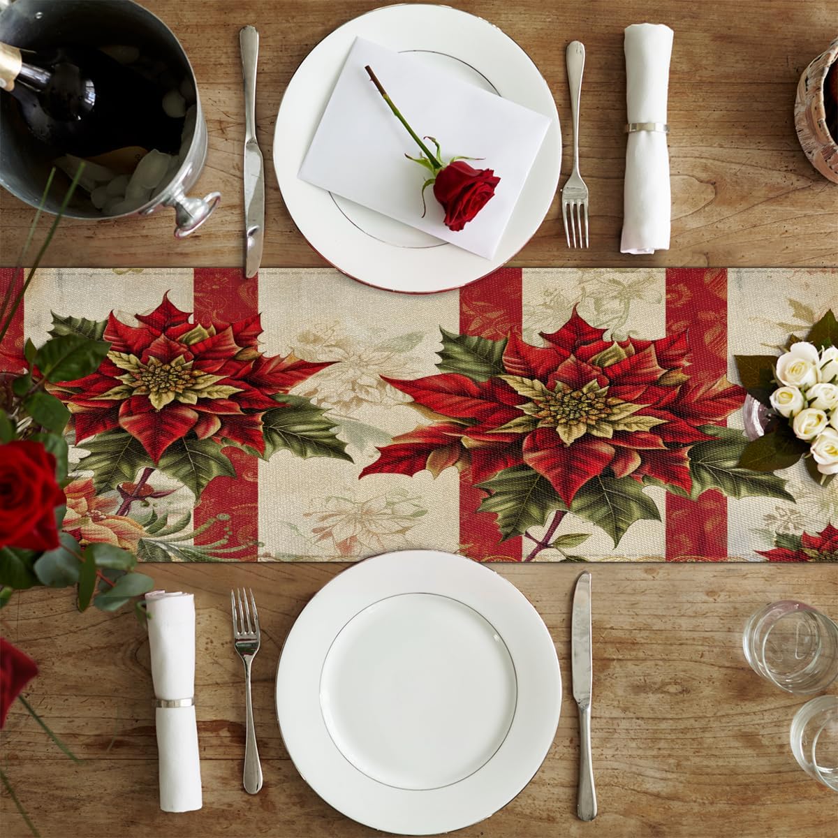 Runner da tavola con stella di Natale, 33 x 182 cm, decorazione per tavolo da pranzo per la casa e le feste