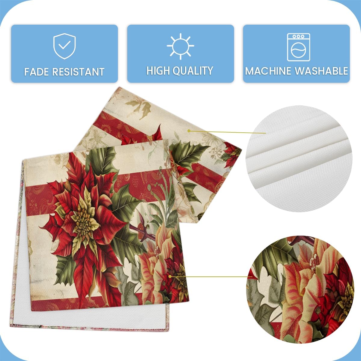Materiale della tovaglia: il nostro runner da tavola è realizzato in poliestere. Sono resistenti e progettati per un uso a lungo termine. Sono cuciti saldamente, morbidi, leggeri e resistenti al calore, proteggono efficacemente il piano del tavolo Elegante decorazione per la casa: i nostri runner da tavola splendidamente stampati aggiungono un tocco di eleganza al tuo arredamento. Sono adatti per tavoli da pranzo in cucina, matrimoni, feste a tema, vacanze e celebrazioni per eventi speciali Dimensioni perfette: le nostre tovaglie misurano 33 x 182,9 cm, ideali per tavoli da pranzo per 4-6 persone. Si adattano perfettamente al tuo tavolo, migliorando la tua esperienza culinaria Facile da pulire: le tovaglie sono facili da pulire. Possono essere lavati in lavatrice con ciclo delicato, quindi asciugati a bassa temperatura o asciugati all'aria. Questo ti fa risparmiare tempo Regalo perfetto: i motivi unici ed eleganti completano l'arredamento della tua casa. Un ottimo regalo per familiari e amici