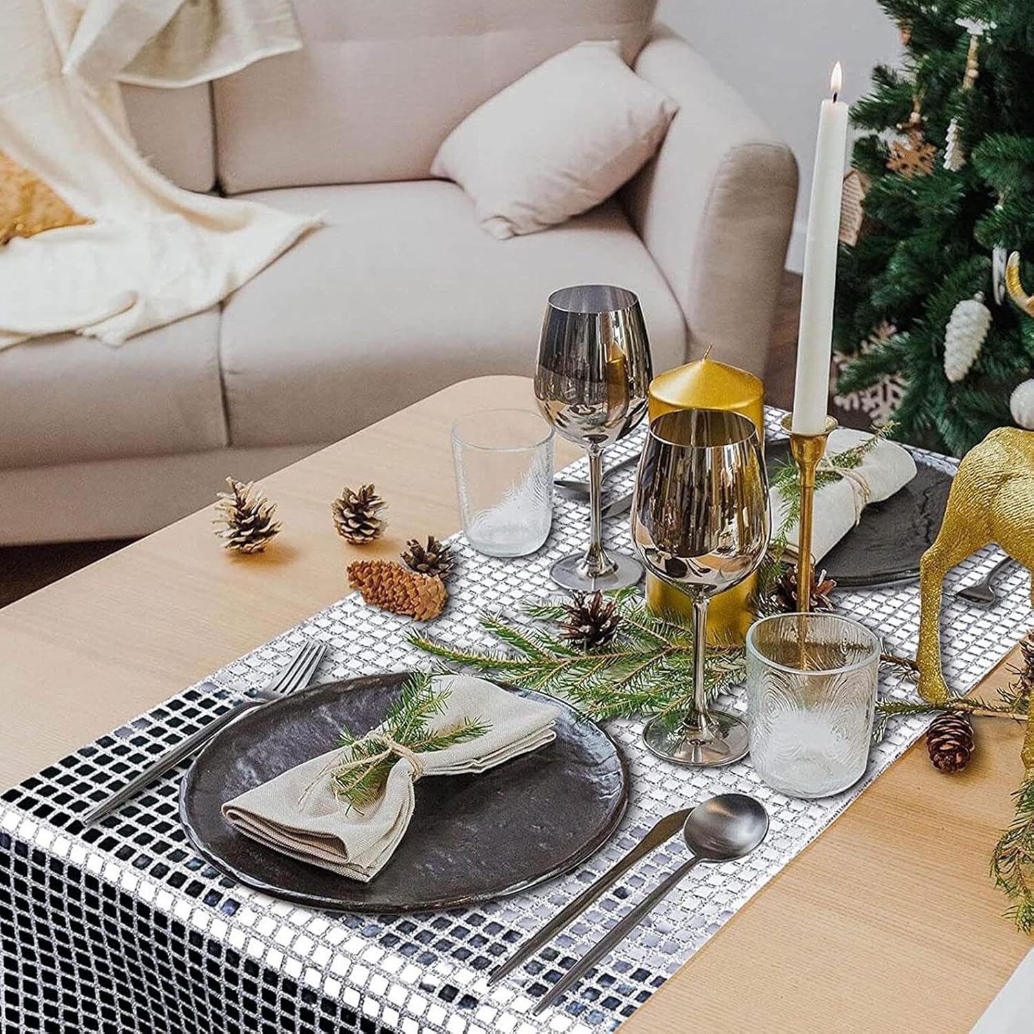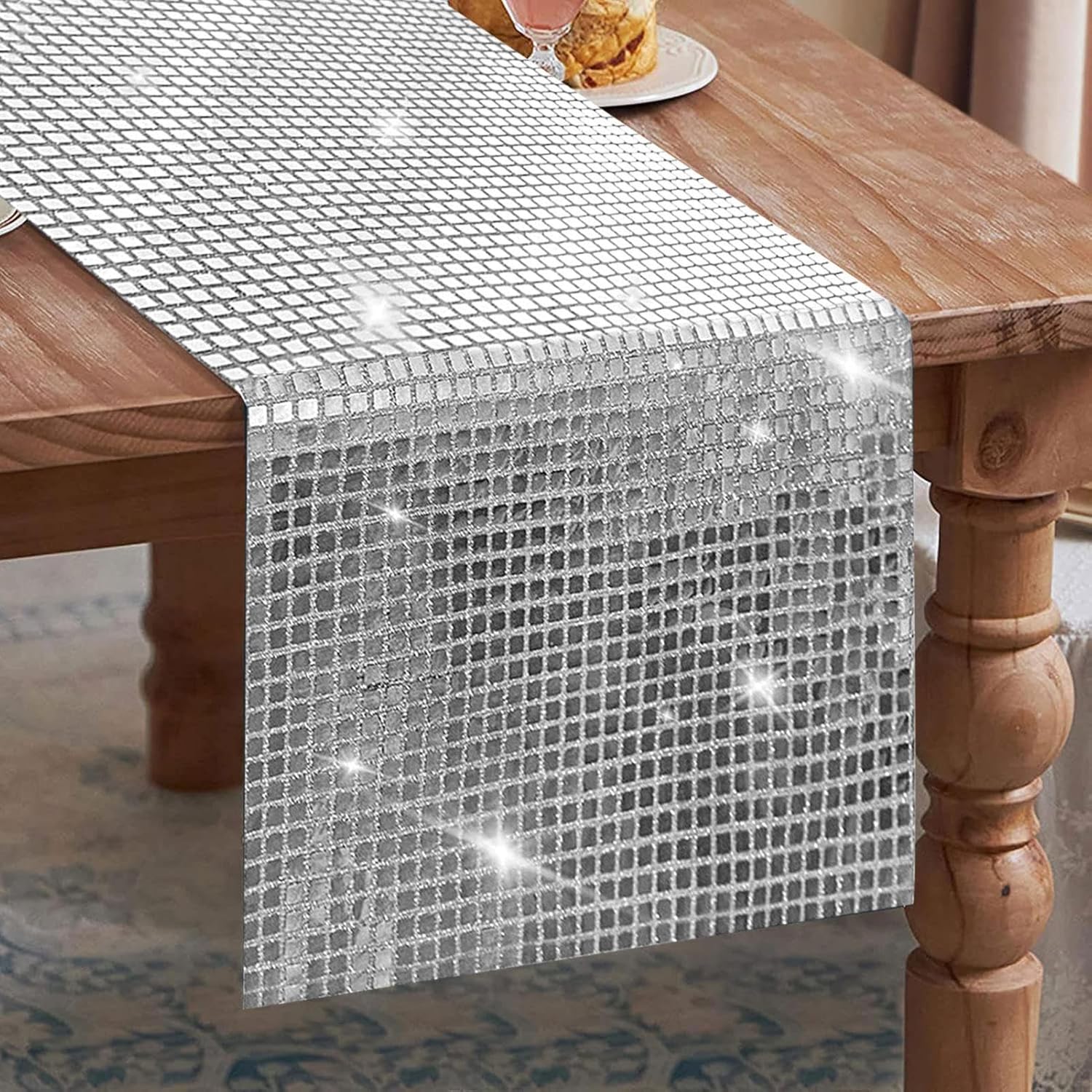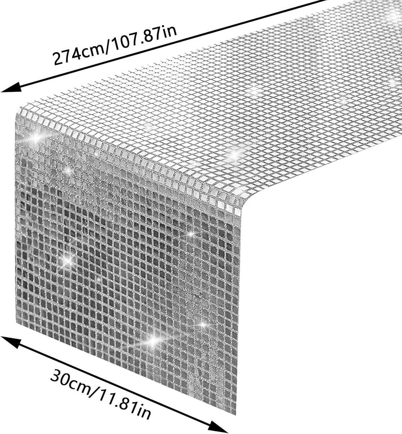 Attraenti motivi con paillettes: i motivi con paillettes su questo runner da tavolo da discoteca sono accattivanti e mozzafiato, rendendo la tua tavola più affascinante ed elegante. Riflettono la luce e creano un effetto brillante e bello. Non facile da deformare: il runner da discoteca è una combinazione di tessuto in poliestere e materiale paillettes, elegante e resistente. Può resistere allo strappo e allo sbiadimento, in modo da poter godere a lungo della sua brillantezza e lucentezza. Pratico ed ecologico: piega il runner da discoteca e conservalo in un piccolo spazio. Usalo per molte occasioni e risparmia denaro. Pulire con un panno umido e lasciare asciugare all'aria. Non richiede lavatrice o ferro da stiro. Proteggere le paillettes e l'ambiente. Versatile per la maggior parte dei tavoli rettangolari: il runner da discoteca si adatta a qualsiasi tavolo rettangolare. Ha una dimensione generosa di circa 30 x 274 cm e può coprire tavoli con una dimensione applicabile non superiore a 2,4 metri. Accettazione diffusa: con il suo design scintillante ed elegante, il tuo tavolo sarà più attraente ed elegante. Questo runner da discoteca è perfetto per ogni festa, dalla discoteca anni '70 alla festa al neon al matrimonio, addio al celibato, feste estive o compleanno a palla da discoteca.