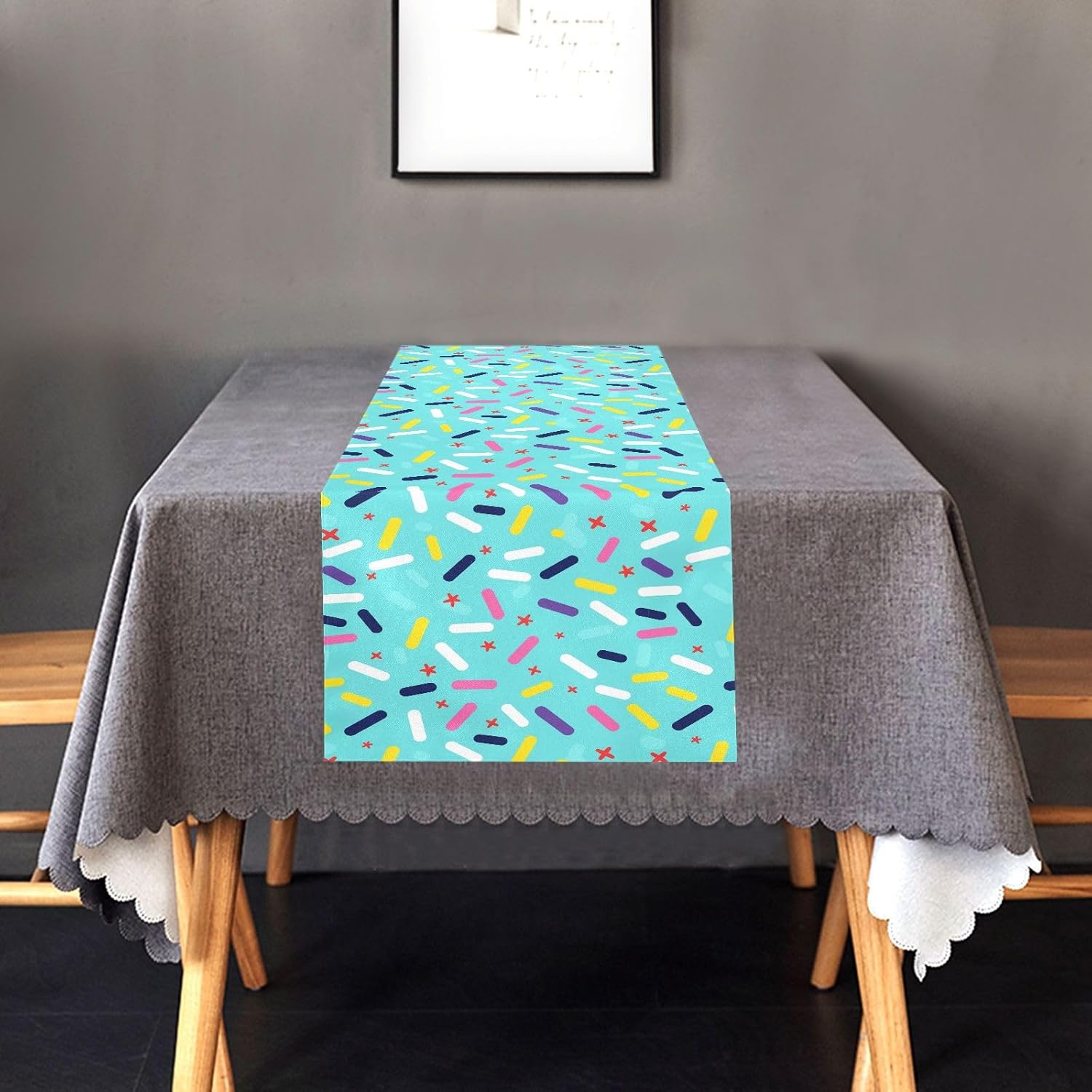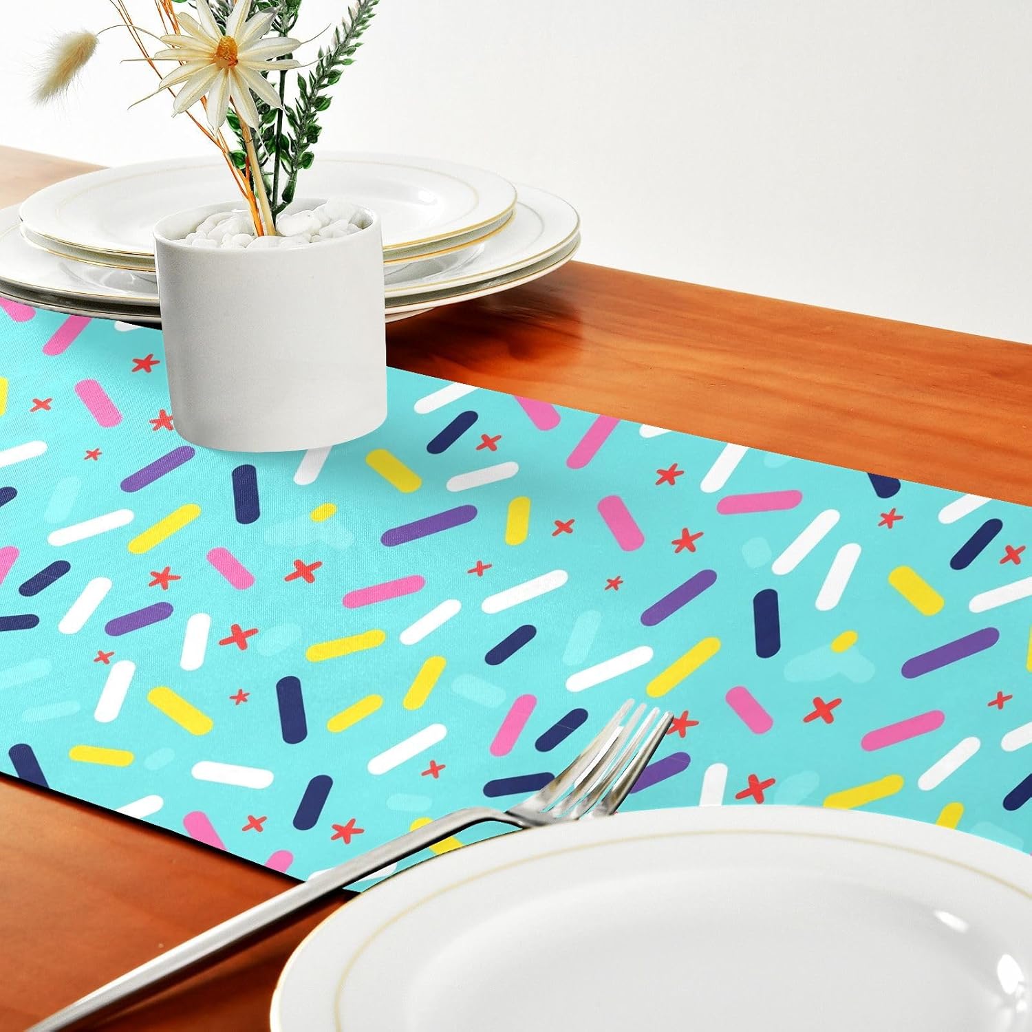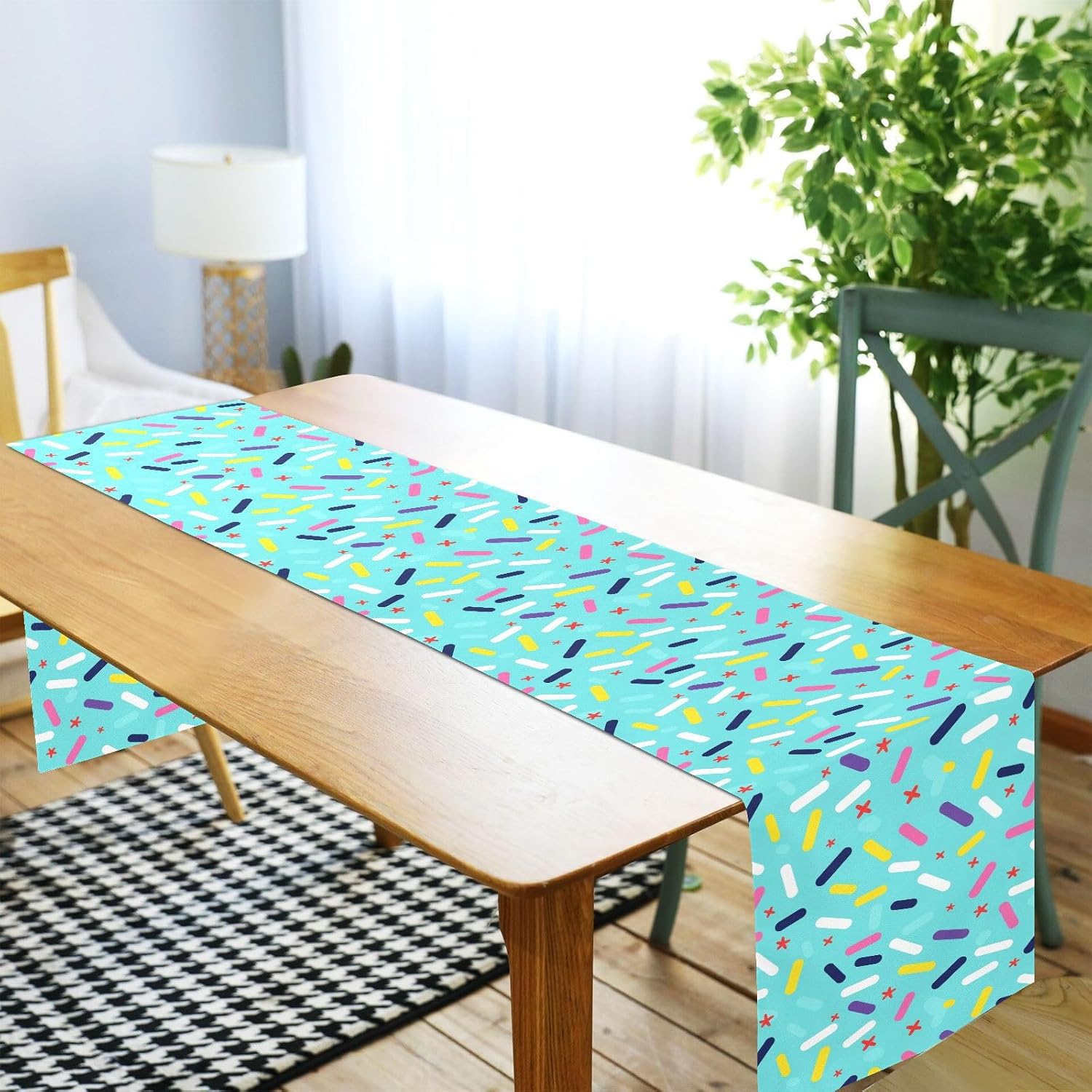 Runner da tavola decorativo per compleanno, turchese, per tavolo, casa, cucina, lunghezza 274 cm