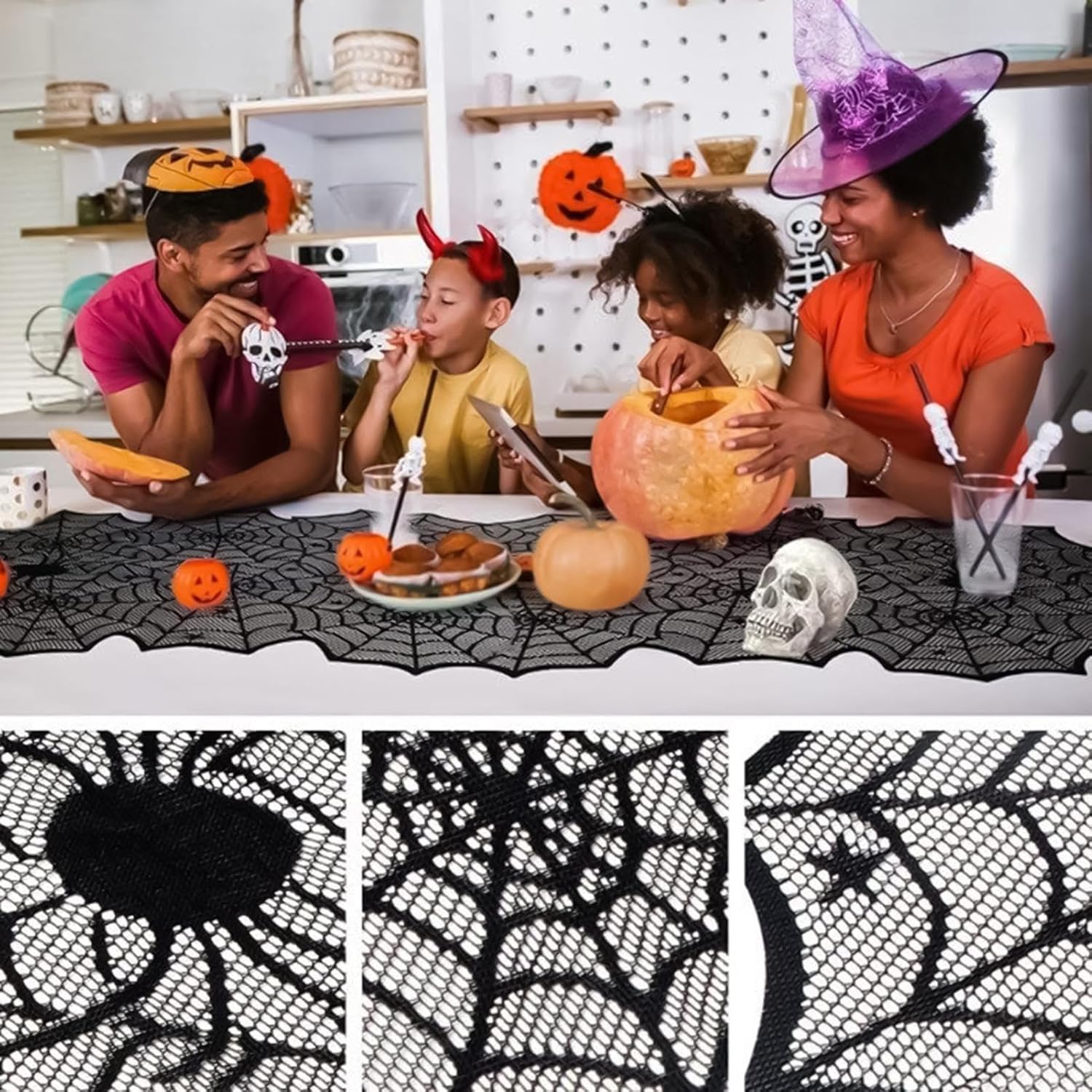 Ambiente natalizio migliorato: offre un'atmosfera cerimoniale migliorata con dettagliati motivi a rete in pizzo nero e un'aura intrigante e misteriosa per le tavolate stagionali Poliestere modellabile: grazie al poliestere resistente alla vita, questo runner è progettato per mantenere la sua forma e resistere anche dopo un uso prolungato, fornendo prestazioni affidabili come elemento decorativo per riunioni o eventi di Halloween Foquording dinamico dello spazio: esplora diverse opzioni per la disposizione dello stile, offrendo compatibilità con diverse decorazioni della stanza e consentendo un posizionamento flessibile su tavoli o caminetti in scene diverse con facilità e versatilità senza sforzo Leggero e compatto: Combinando un design salvaspazio con materiali leggeri, questo runner da tavolo semplifica il trasporto e lo stoccaggio, offrendo praticità e comodità ai sostenitori delle vacanze. Comodità di installazione senza sforzo: prova un comfort d'uso immediato con questo runner da tavolo che offre un effetto drappeggio naturale aggiungendo allo stesso tempo fascino visivo al tuo allestimento di Halloween senza complicati passaggi migliorati