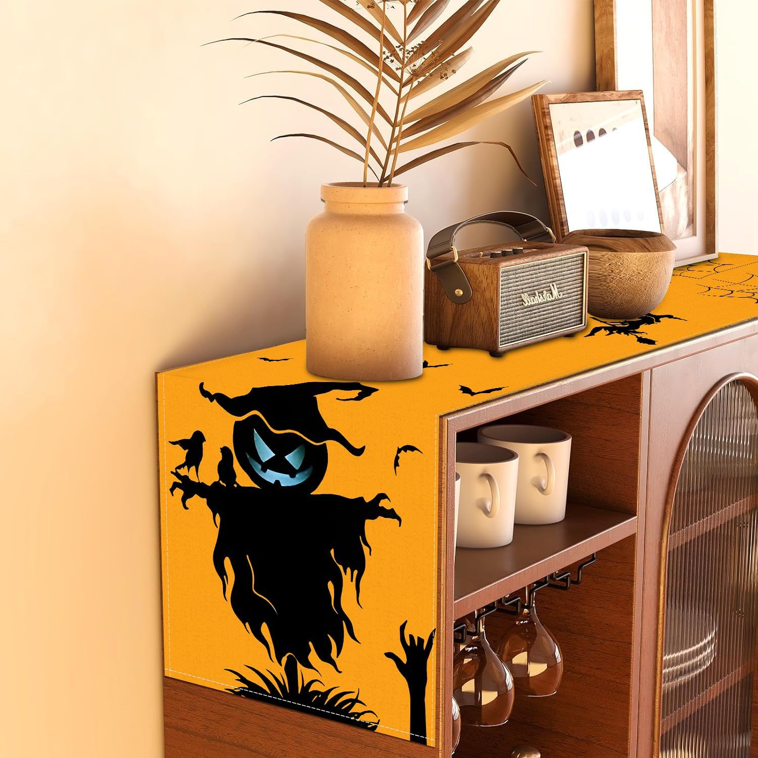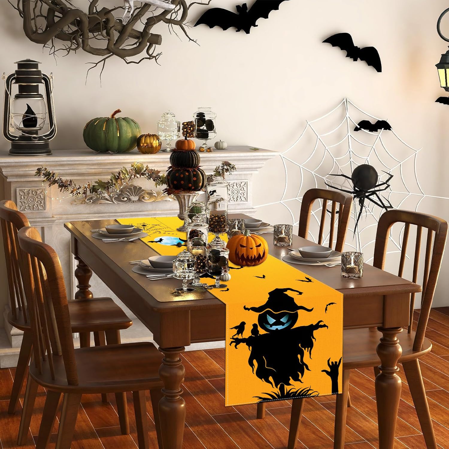 Materiale di alta qualità: il runner da tavolo spaventapasseri spaventoso è realizzato al 100% in lino, fibra di poliestere, morbido e traspirante, con buon assorbimento dell'umidità e resistenza al calore, non facile da indossare, uso prolungato. Runner da tavolo di Halloween: ideale per le decorazioni di Halloween, questo runner da tavolo festivo aggiunge fascino a tavoli da pranzo, tavolini da caffè, supporti TV o cassettiere. Adatto a tavoli di diverse dimensioni: 33 x 183 cm, 33 x 230 cm, 30 x 275 cm. Che sia un tavolo per 6 persone o un tavolo lungo oltre i 2 metri, troverai la giusta dimensione di cui hai bisogno. Si prega di confermare la taglia prima di ordinare. MULTIUSO - Questo runner da tavolo non solo decora il tuo tavolo da pranzo, ma protegge anche la superficie del piano del tavolo, si abbina perfettamente al tavolino da caffè, al tavolo da tè, al tavolo da cucina, al tavolo da pranzo, al tavolo d'ingresso, alla scrivania e altro ancora. 【Lavabile in lavatrice】 La tovaglia di lino è facile da pulire, lavabile in lavatrice e adagiare il runner su una superficie piana per asciugarlo. Rimane uguale e come nuovo dopo ogni lavaggio, nessun restringimento, nessuno sbiadimento.