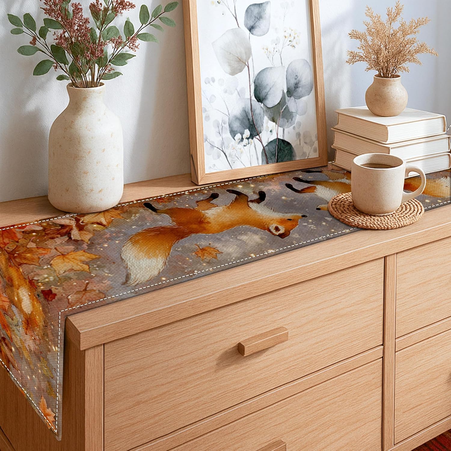 Poliestere dall'aspetto naturale: progettato per ricreare la ricca trama del lino senza la fragilità delle fibre naturali Perfetto per tavoli di medie dimensioni: su misura per adattarsi alla maggior parte dei tavoli da pranzo da 4 a 6 posti, senza sporgenze o spazi vuoti Tessuto lavabile in lavatrice: facile da pulire in acqua fredda e asciugabile in asciugatrice a bassa temperatura Immagine stabile del colore: mantiene la luminosità e la chiarezza originali anche dopo ogni lavaggio Attrattiva visiva: l'opera d'arte distintiva aggiunge personalità e fascino al tuo pasto o festa